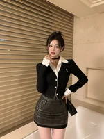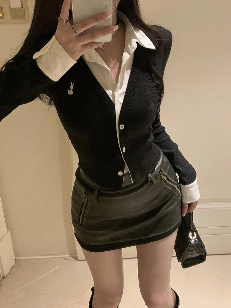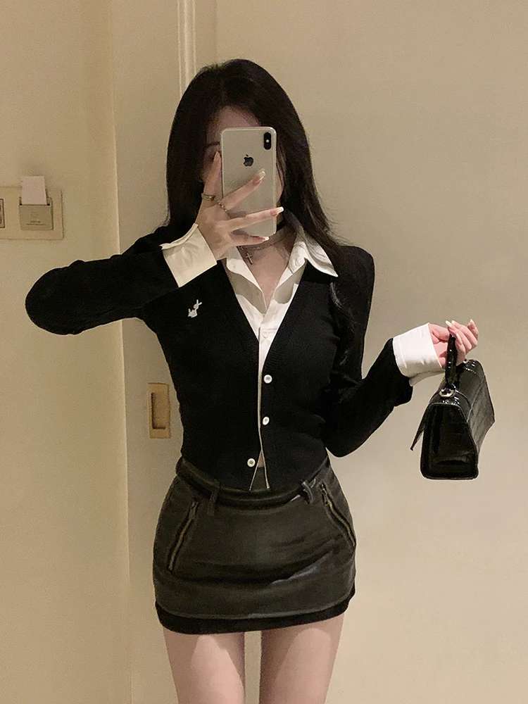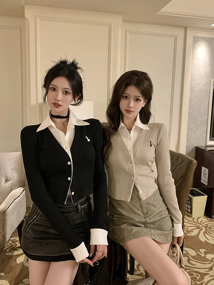 This knit cardigan features a trendy college-style design, perfect for those who want to stand out in the crowd. Its unique splicing pattern adds a touch of individuality to your wardrobe.