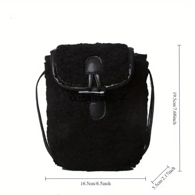 Color Blocking Minimalist Mobile Phone Bag Single Shoulder Crossbody Small Bag Women’s Autumn and Winter Retro Lamb Fleece Bag