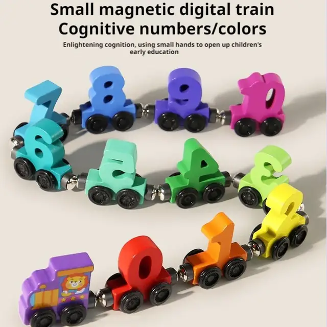 Number Learning Toy: This wooden magnetic number train set includes numbers 0-10, helping children learn numbers and basic math concepts, making it an ideal early education tool.