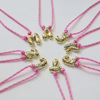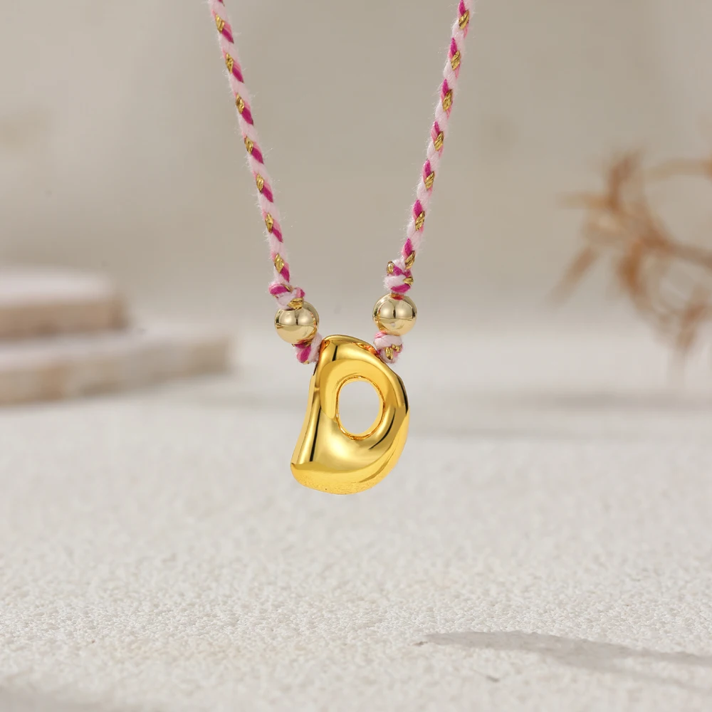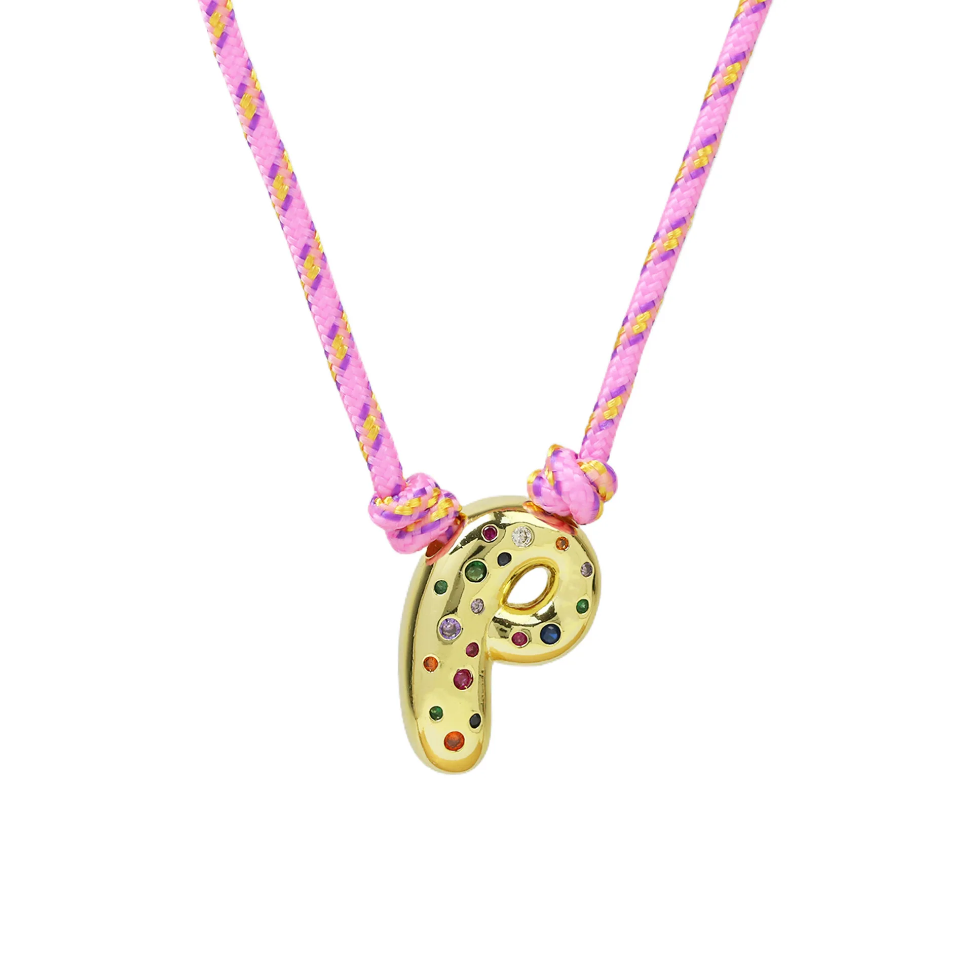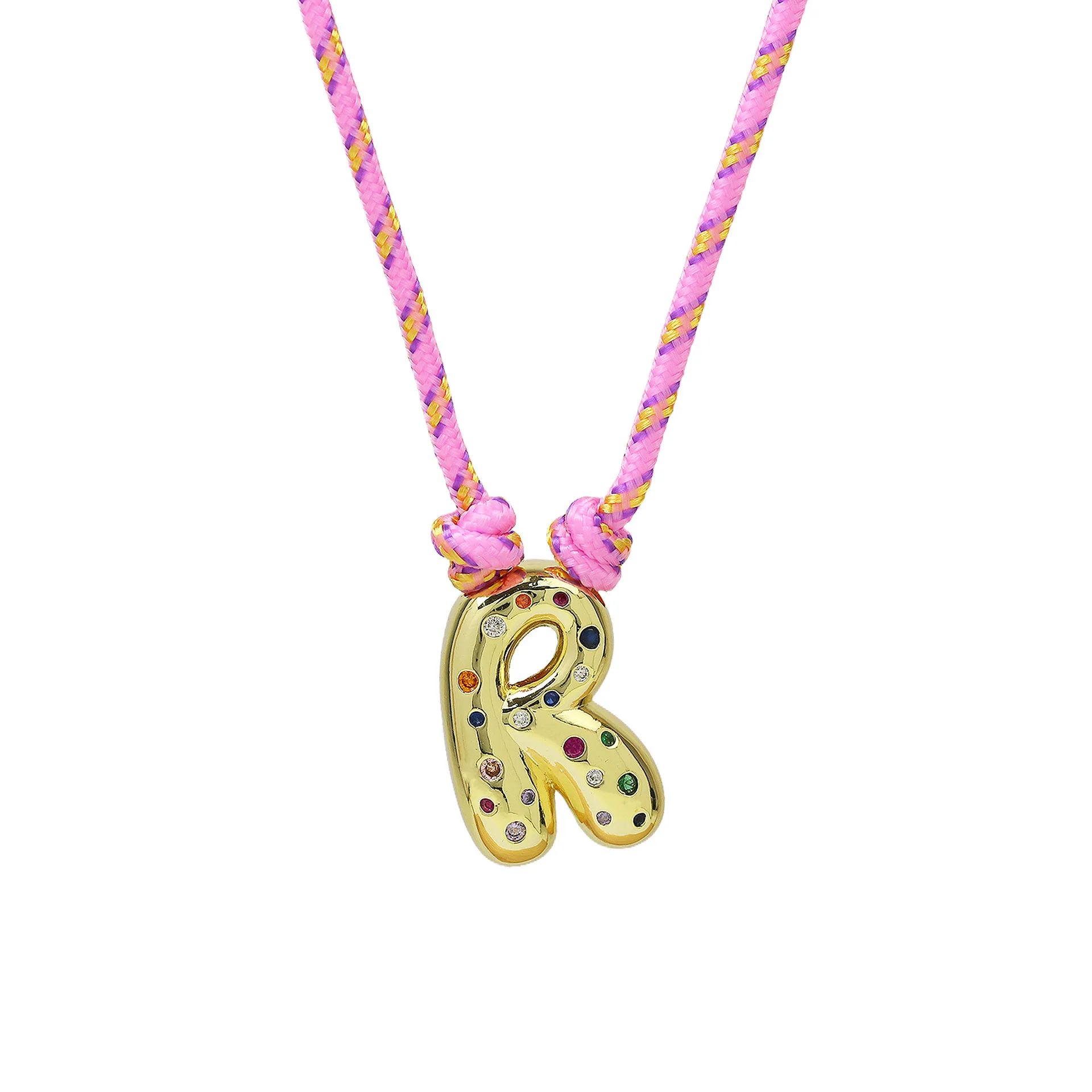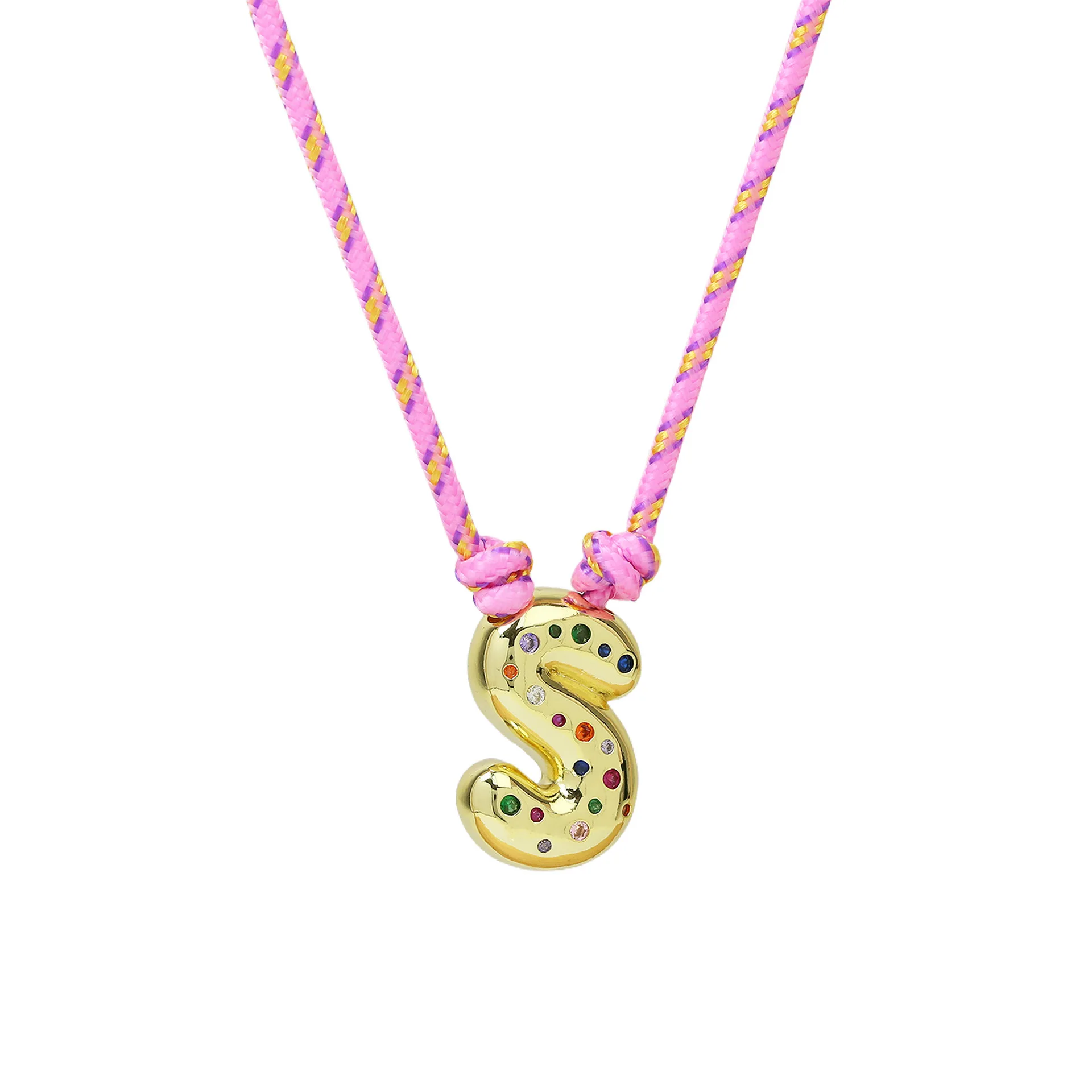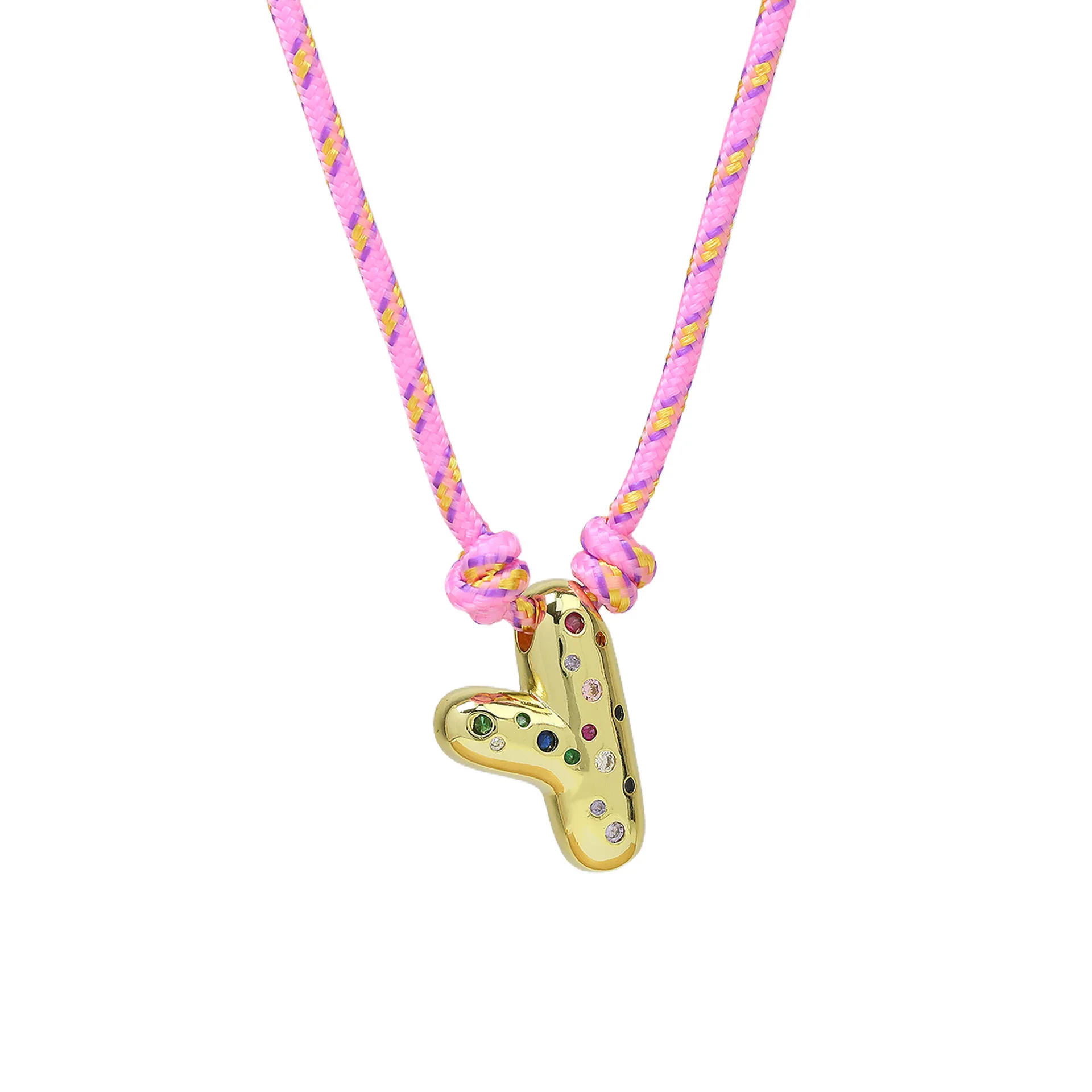 Colorful Cubic Zirconia Chunky Bubble Letter Pendant Necklace for Women Fashion Pink Rope Chain 18K Gold