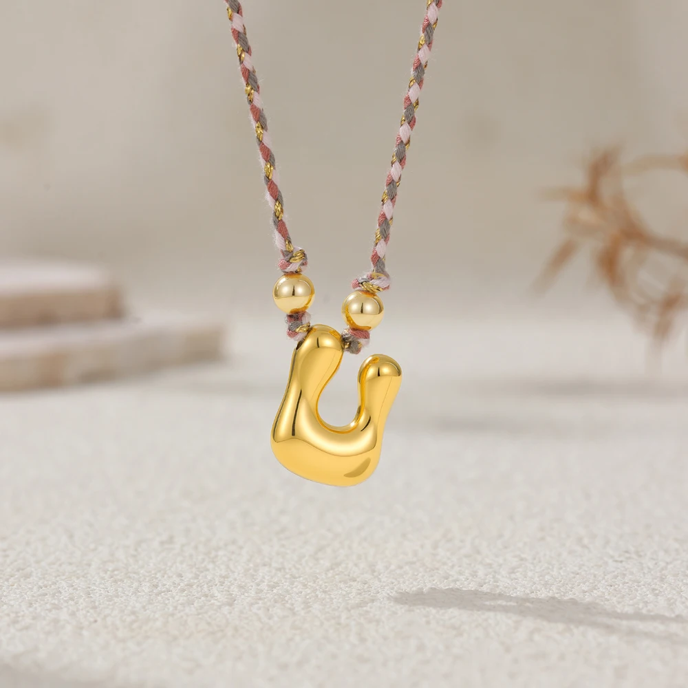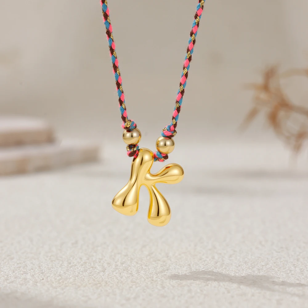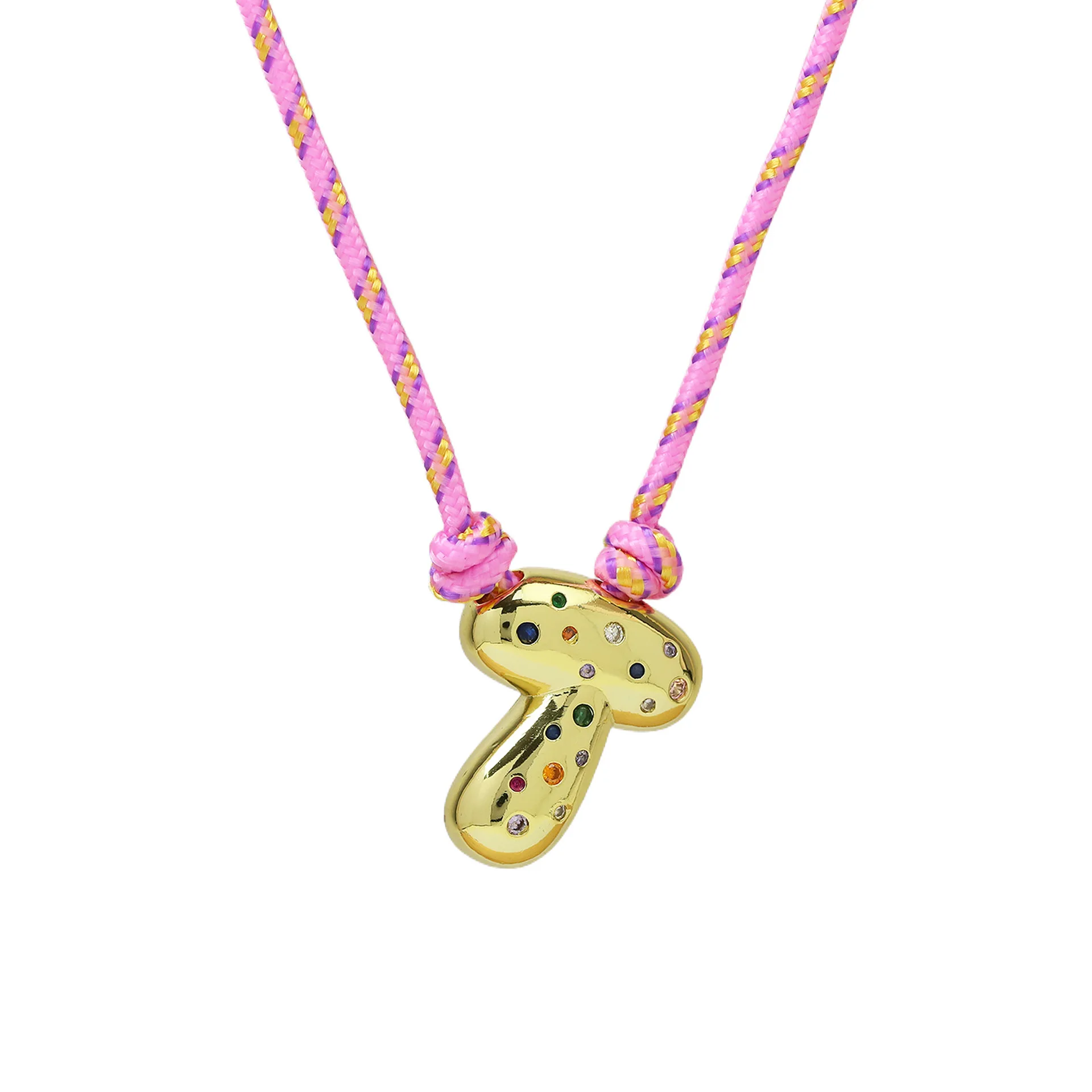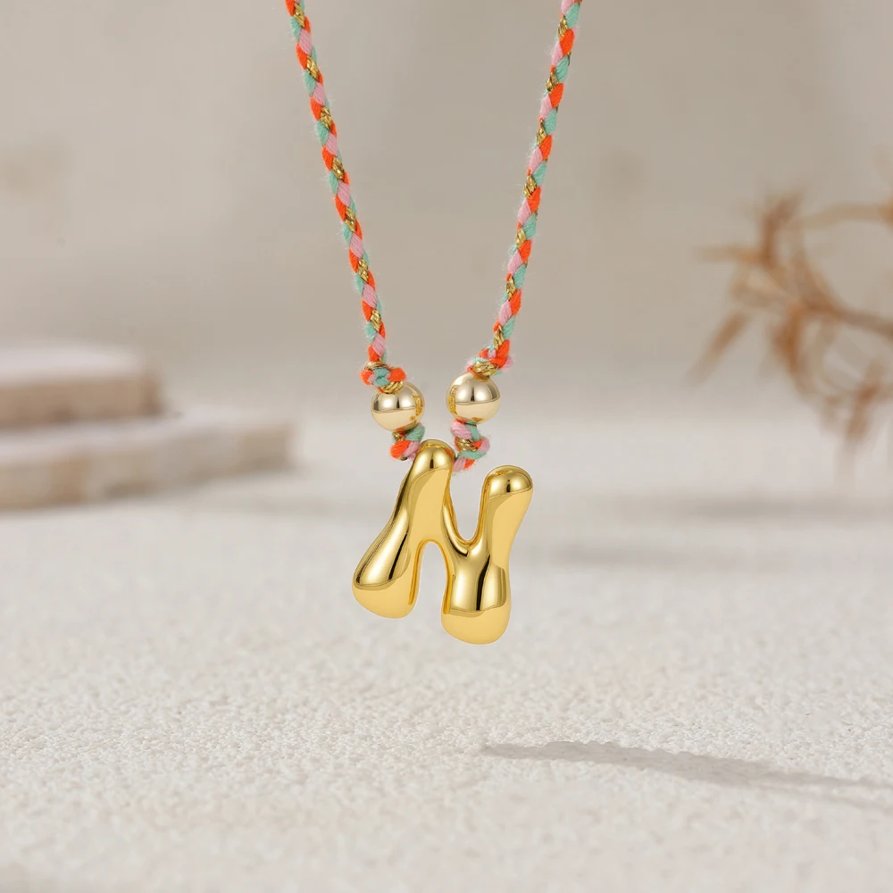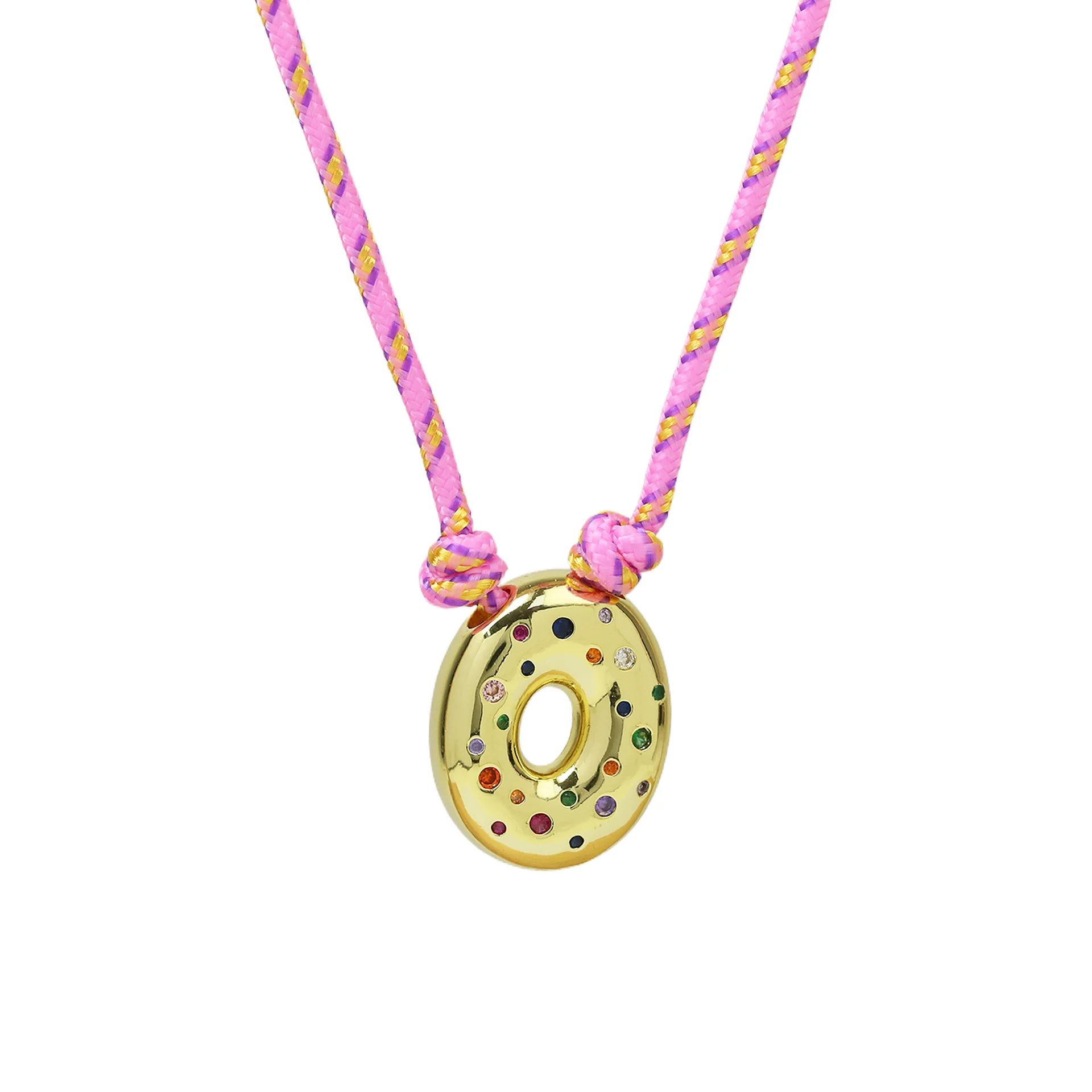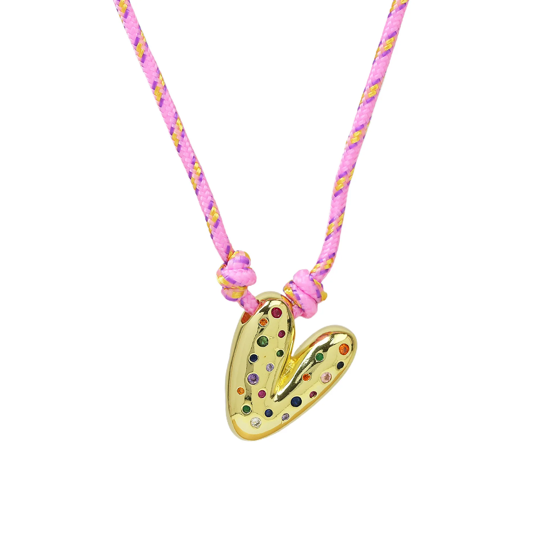 Colorful Cubic Zirconia Chunky Bubble Letter Pendant Necklace for Women Fashion Pink Rope Chain 18K Gold