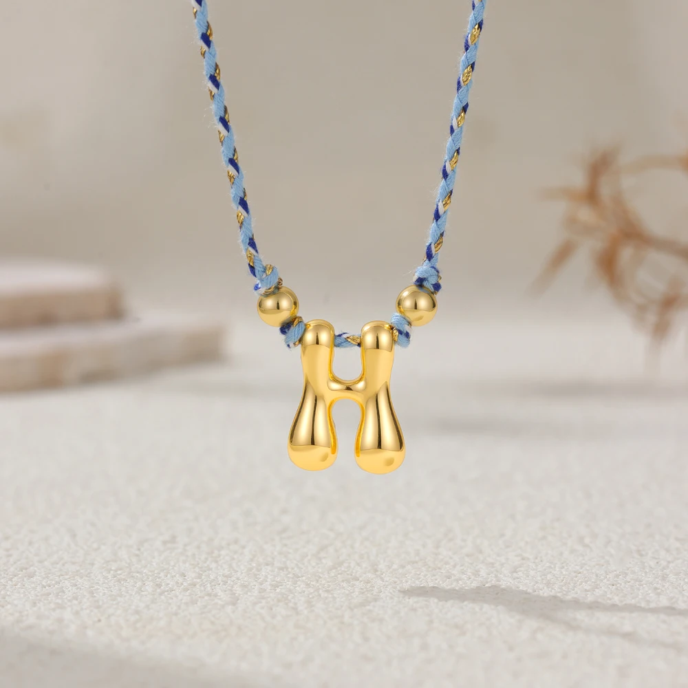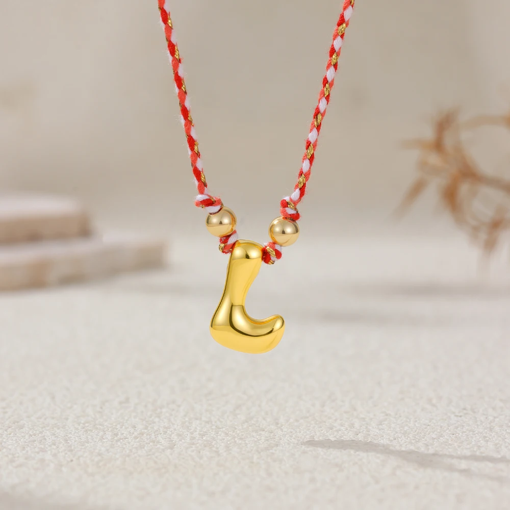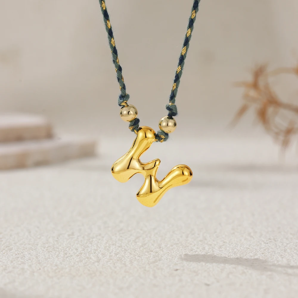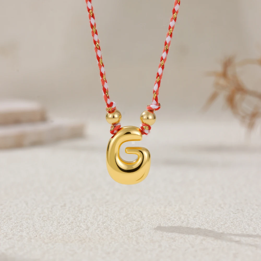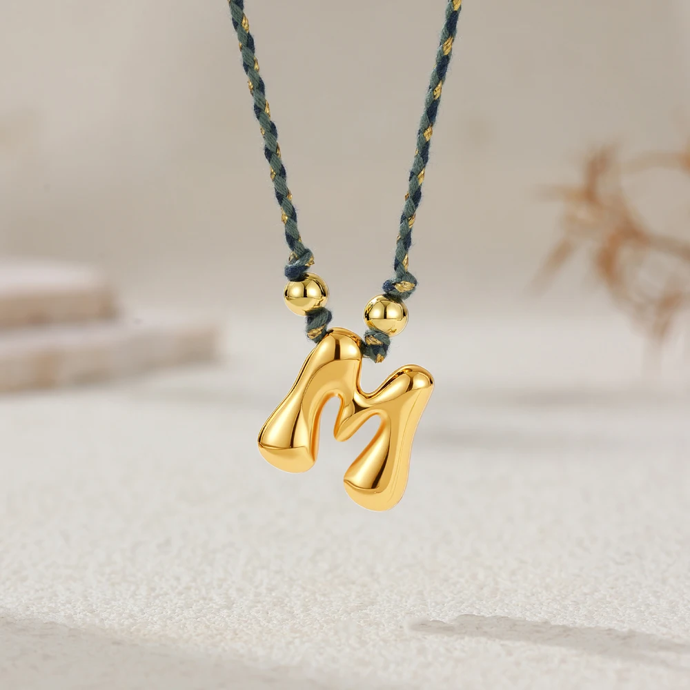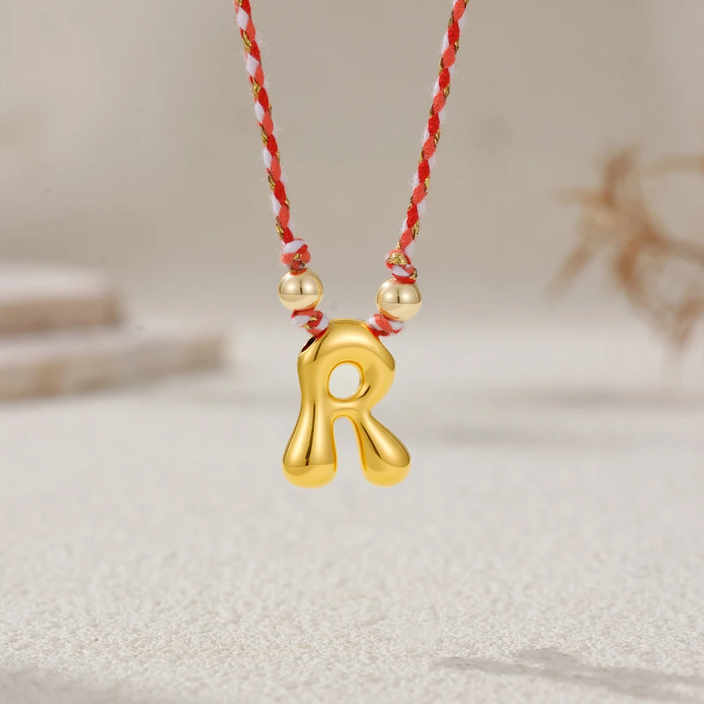 Colorful Cubic Zirconia Chunky Bubble Letter Pendant Necklace for Women Fashion Pink Rope Chain 18K Gold