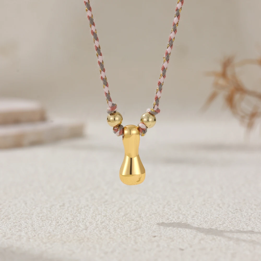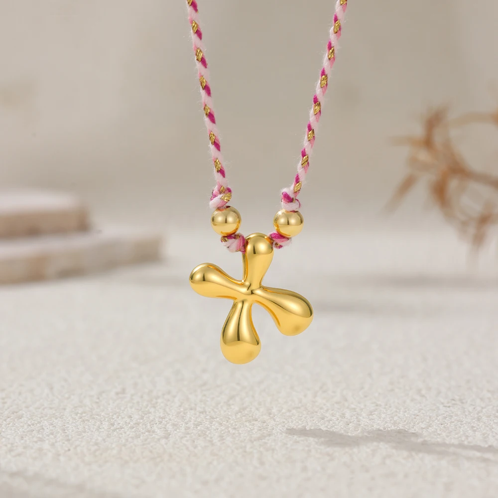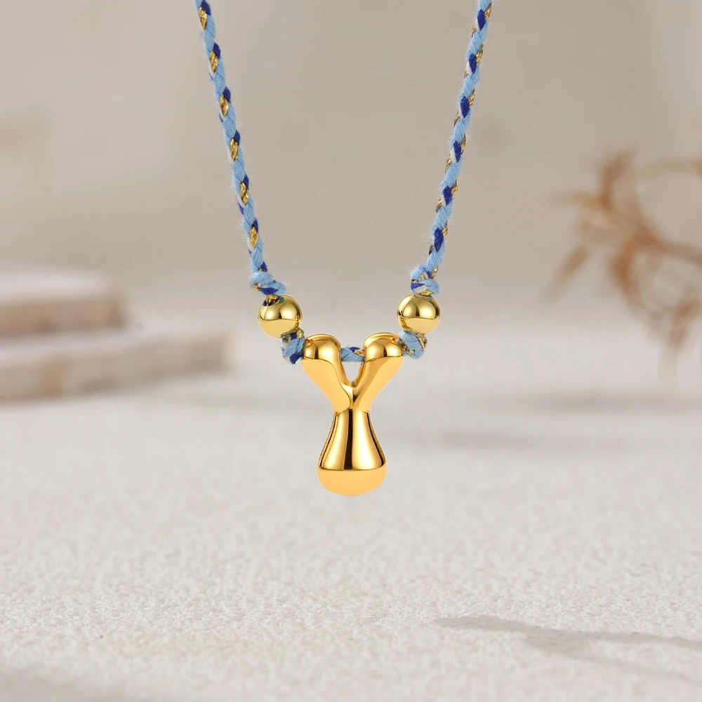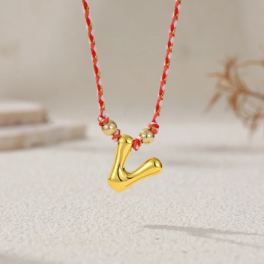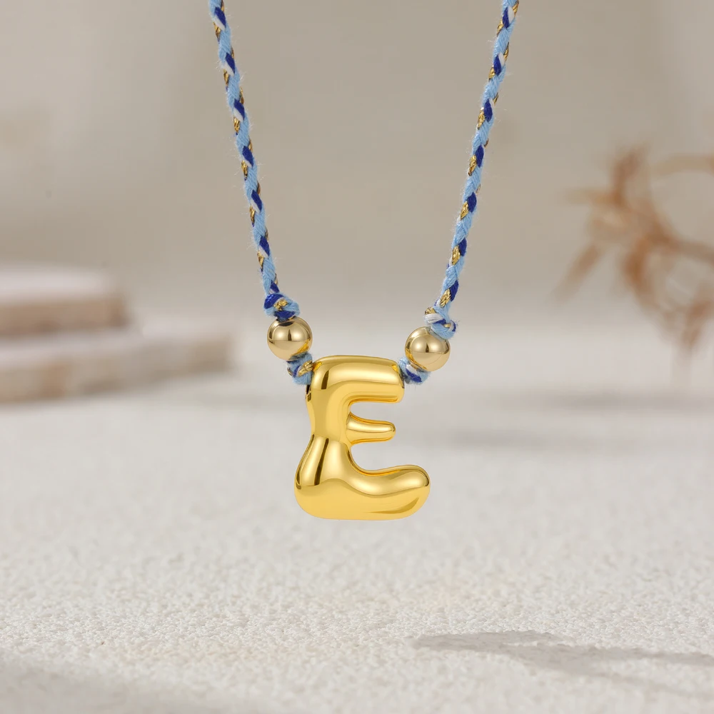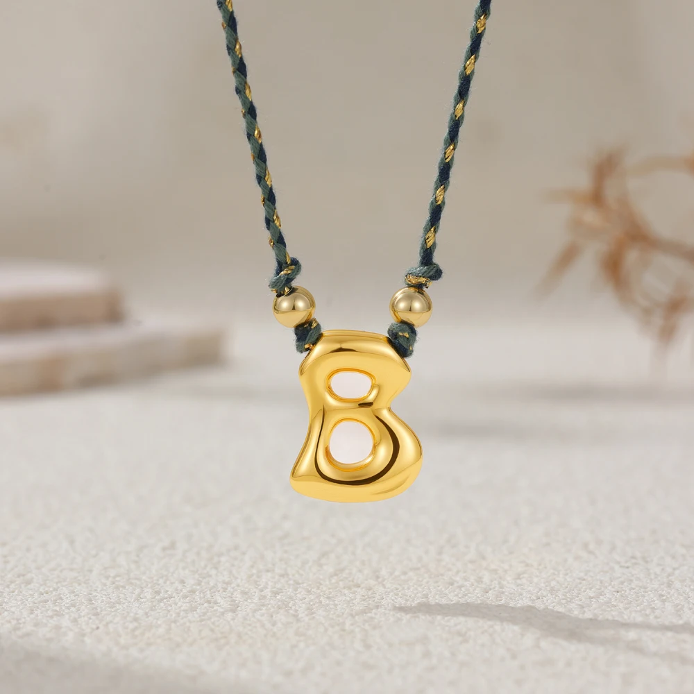 Colorful Cubic Zirconia Chunky Bubble Letter Pendant Necklace for Women Fashion Pink Rope Chain 18K Gold