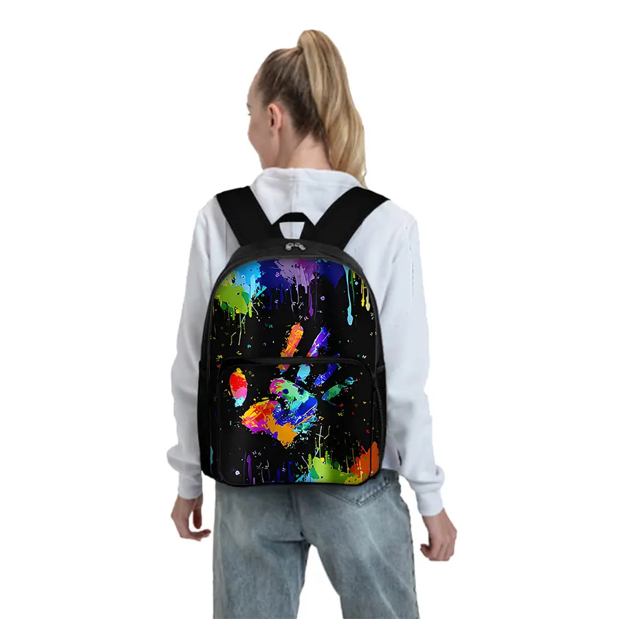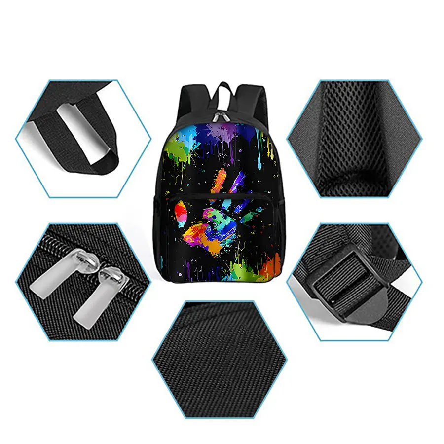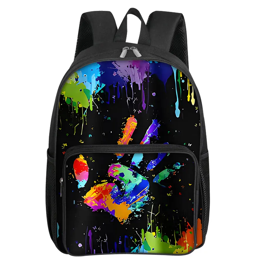 Colorful Palm Pattern Square Front Pocket Backpack Zipper Large Capacity for Boys Girls Best Gift 3D Cartoon Children’s School Bag