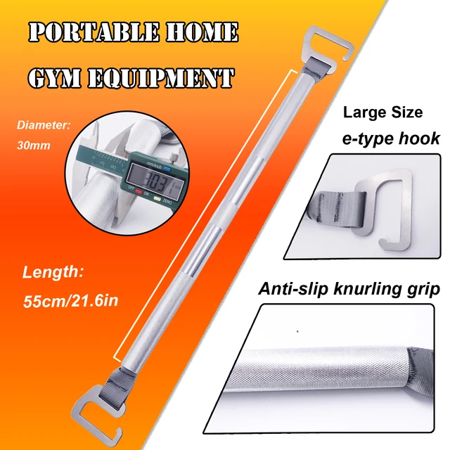 3.ALUMINUM ALLOY BAR :The resistance band bar is made of aluminum alloy with non-slip knurling, which is durable yet lightweight. The middle is passed through by the webbing, and the two ends can be rotated.