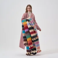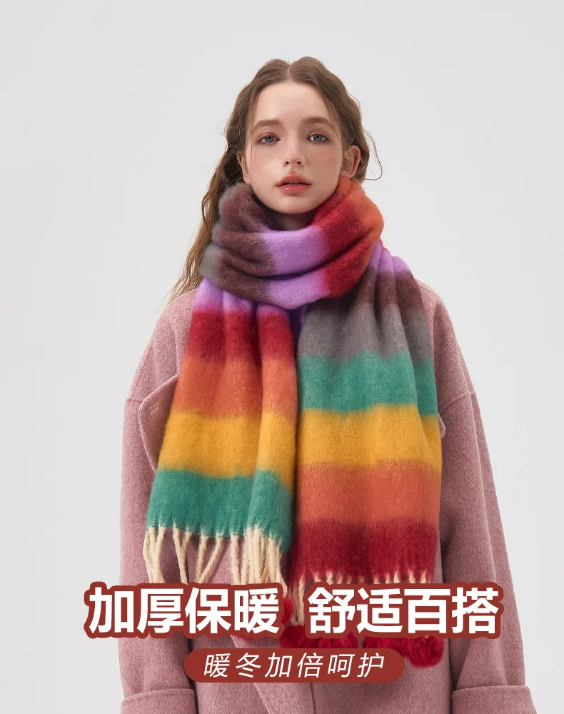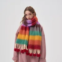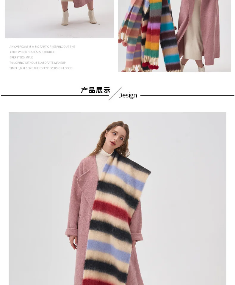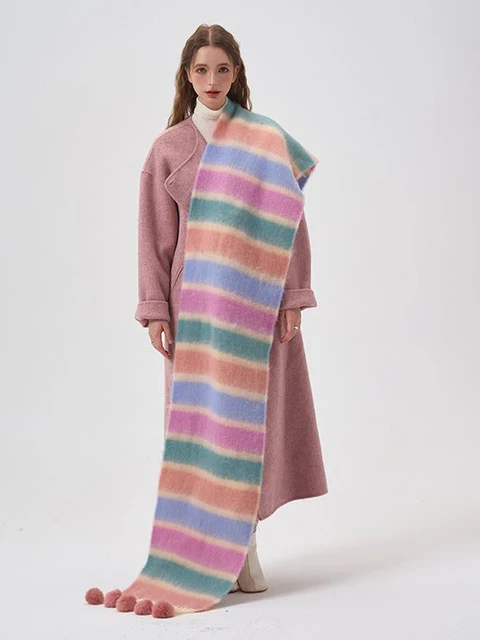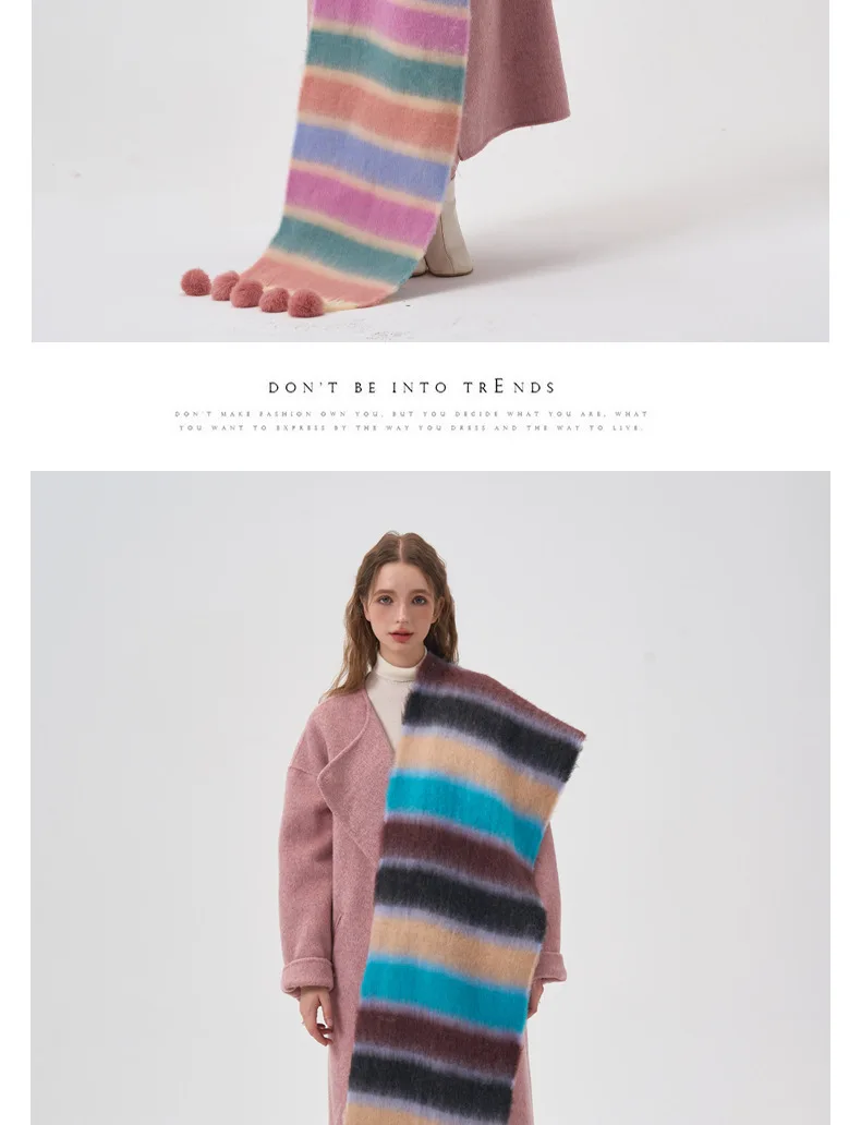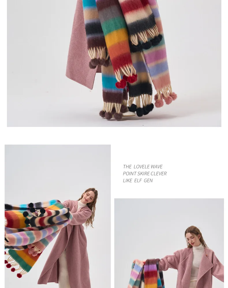 Colorful Striped Winter Scarf for Women Hairball Pashmina Scarves Wraps Female Thick Soft Bufanda Big