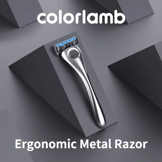 Colorlamb Silver Color Men Razor for Shaving Barber Tool Classy Manual Shaver with 2PCS 5 Layer Blades