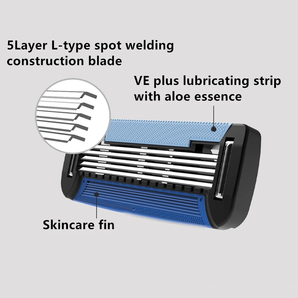 Colorlamb Portable Manual Men Razor Set Shells Shape + 2PCS 5 Layers Martensitic Stainless Steel Refill Cartridges Barber Shaver