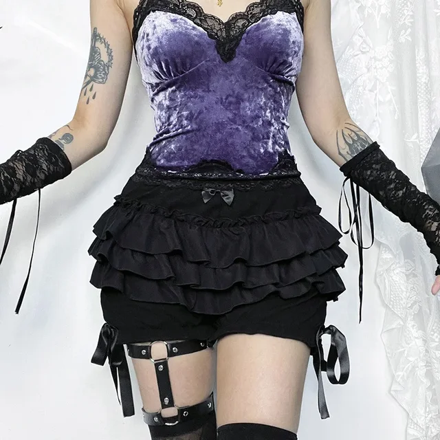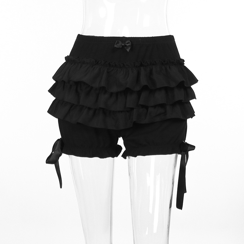 Combhasaki Women Y2K Vintage Retro Gothic Bloomer Shorts Summer Elastic Waist Layered Solid Casual Shorts Streetwear for Daily