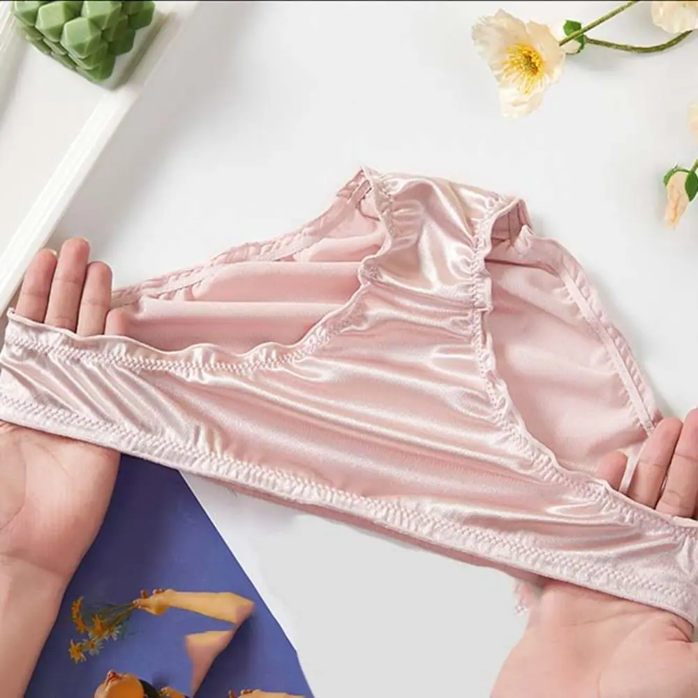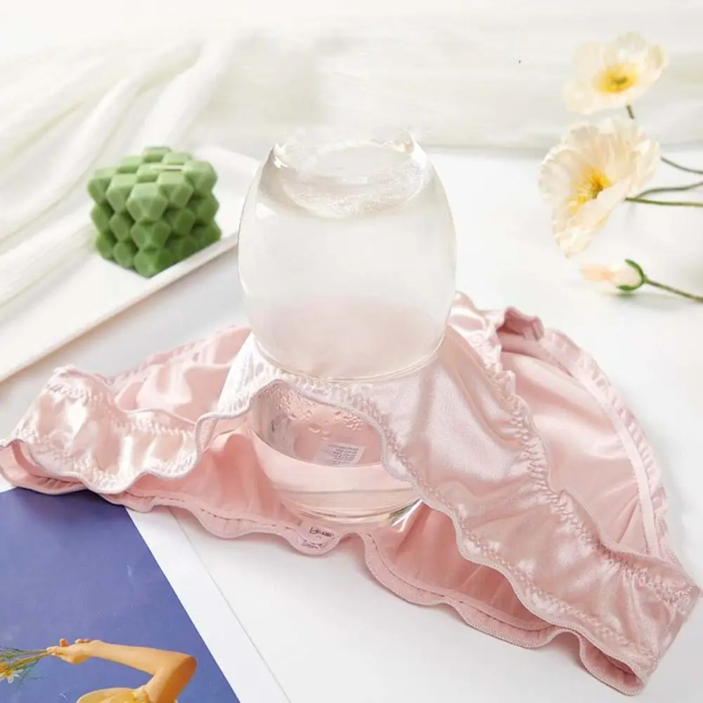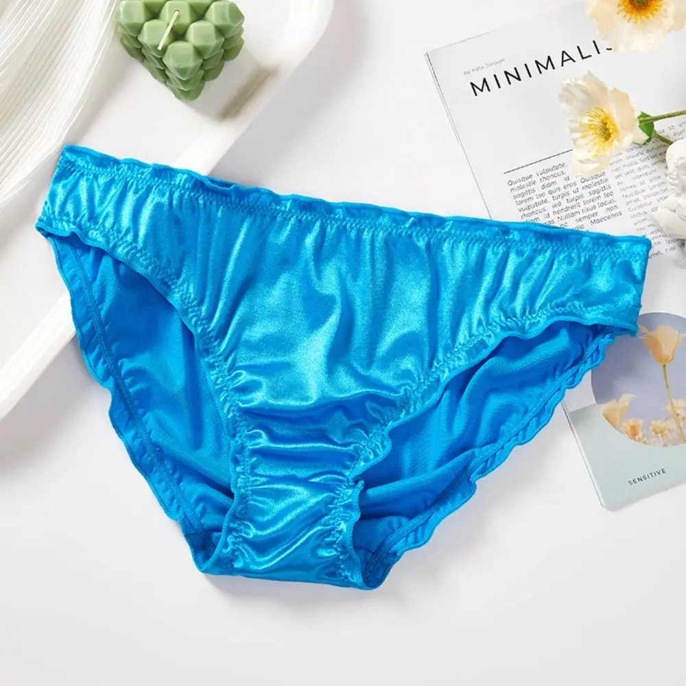 Comfortable Low Waist Satin Silk Panties Solid Color Underpants Ruffles Briefs Underwear Thin Women's Panties Girl