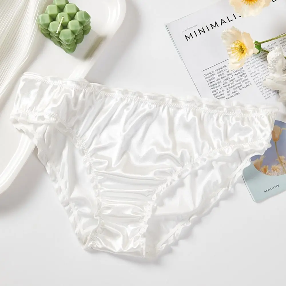 Comfortable Low Waist Satin Silk Panties Solid Color Underpants Ruffles Briefs Underwear Thin Women’s