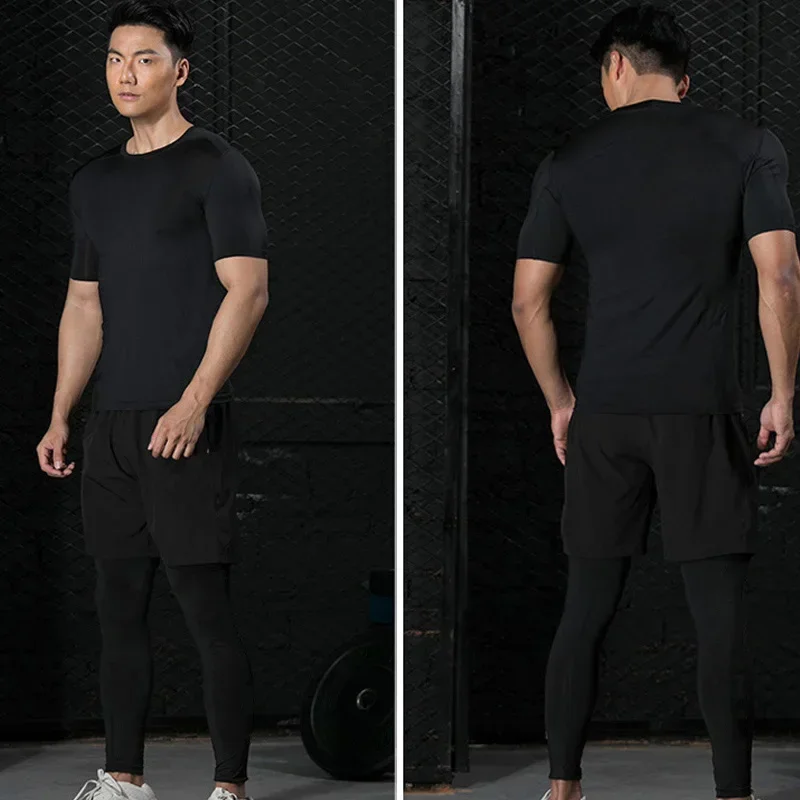 spring autumn fitness exercise long sleeved t-shirt men slim breathable pure color elastic training tops Men running T-shirt
