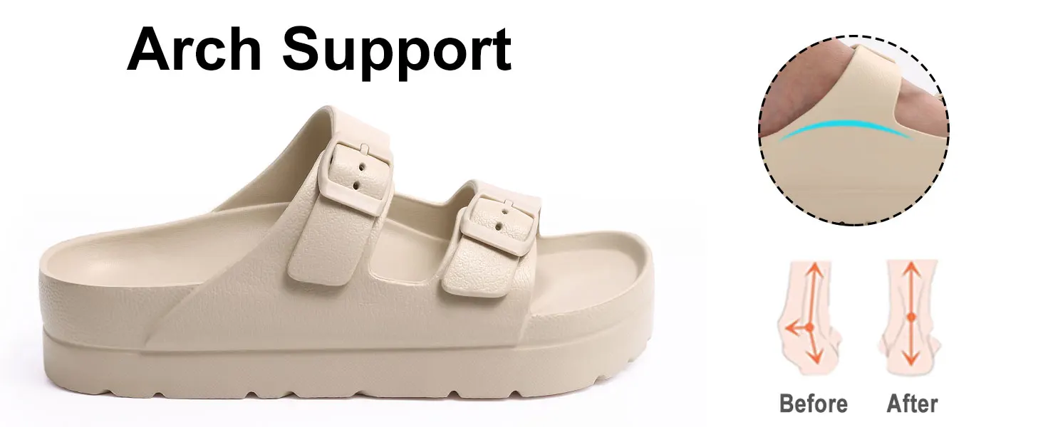 Comwarm New Women's Platform Slippers with Arch Support Lightweight Non-slip Eva Slides Summer Beach Sandals Adjustable Buckle