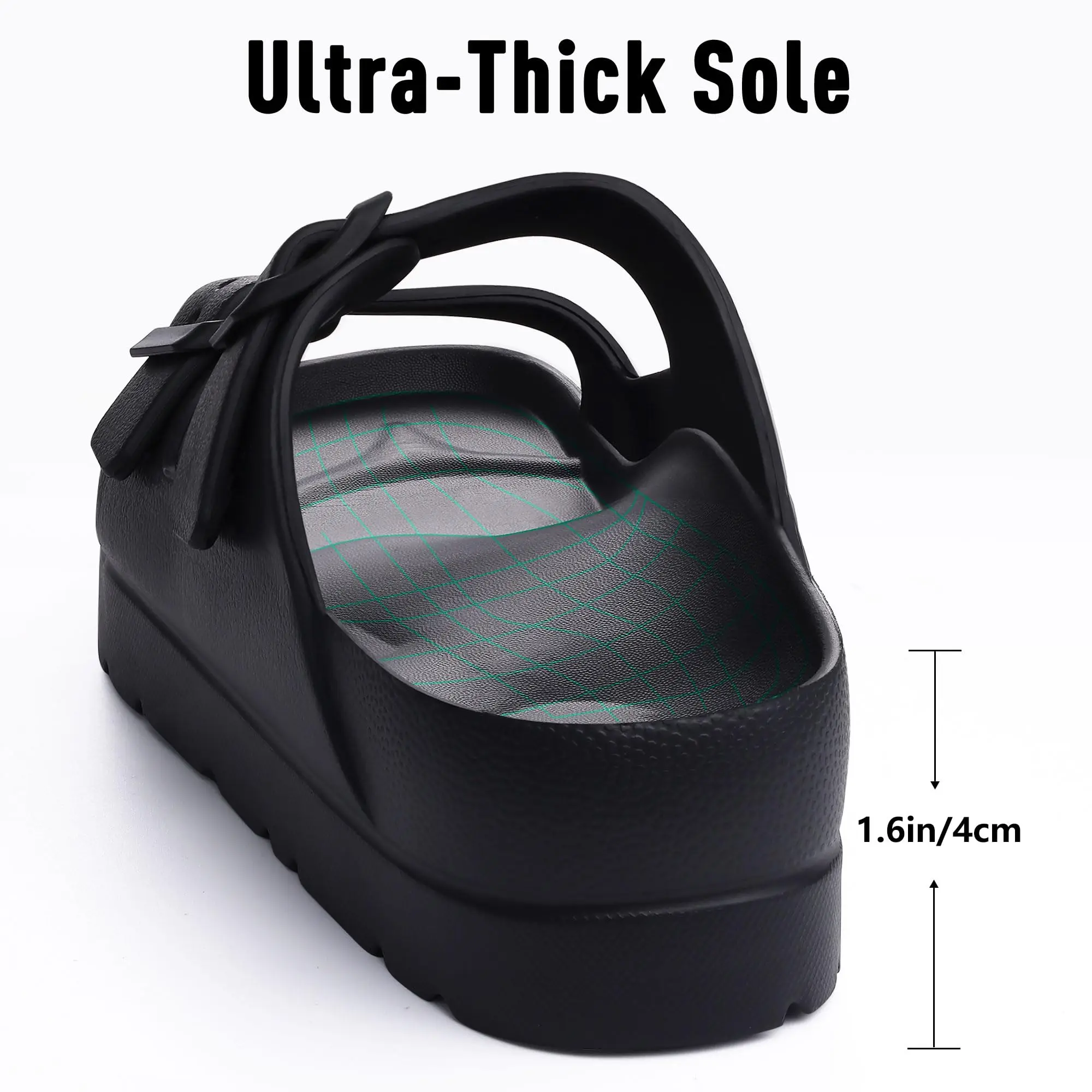• 【Excellent Cushioning】1.6 inch supper thick sole is made of premium and durable EVA material, bouncy slightly rubbery feel, enhancing stable and cushioning performance, just like walking on clouds or marshmallows.