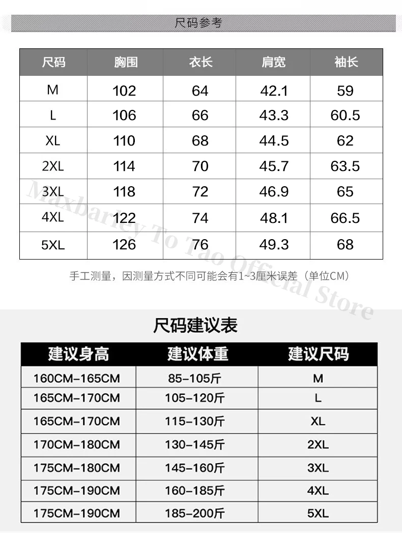 Height: 185-195cm, Weight: 80-85kg,Recommend Size: (AS)4XL