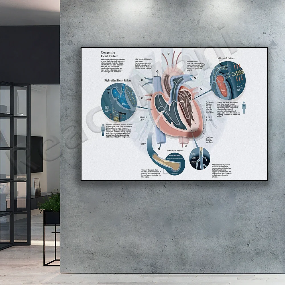 Congestive Heart Failure Horizontal Poster, Heart Failure Awareness Wall Art, Human Heart Medical Wall