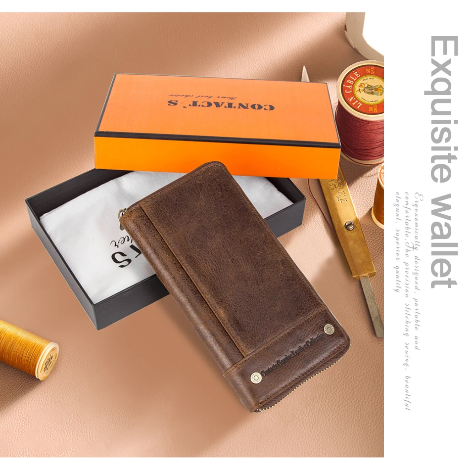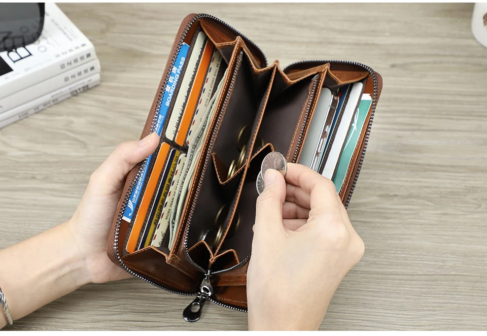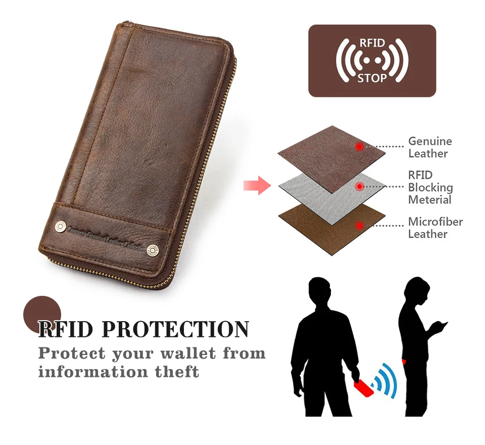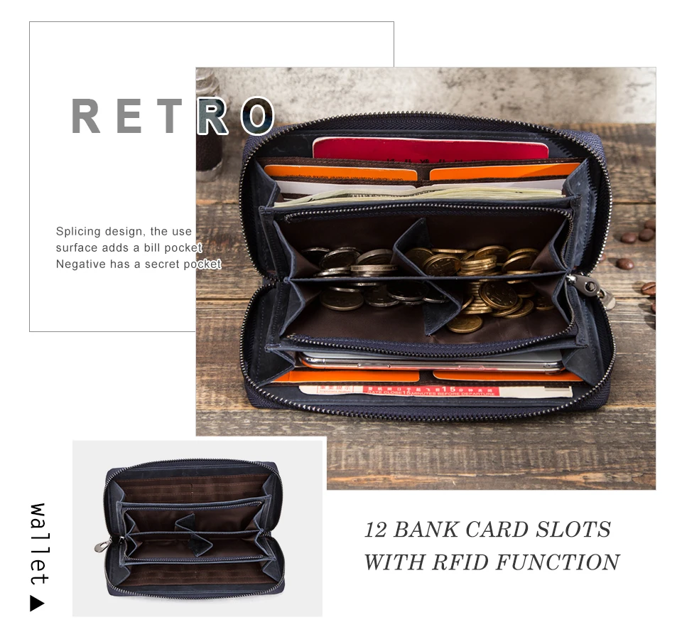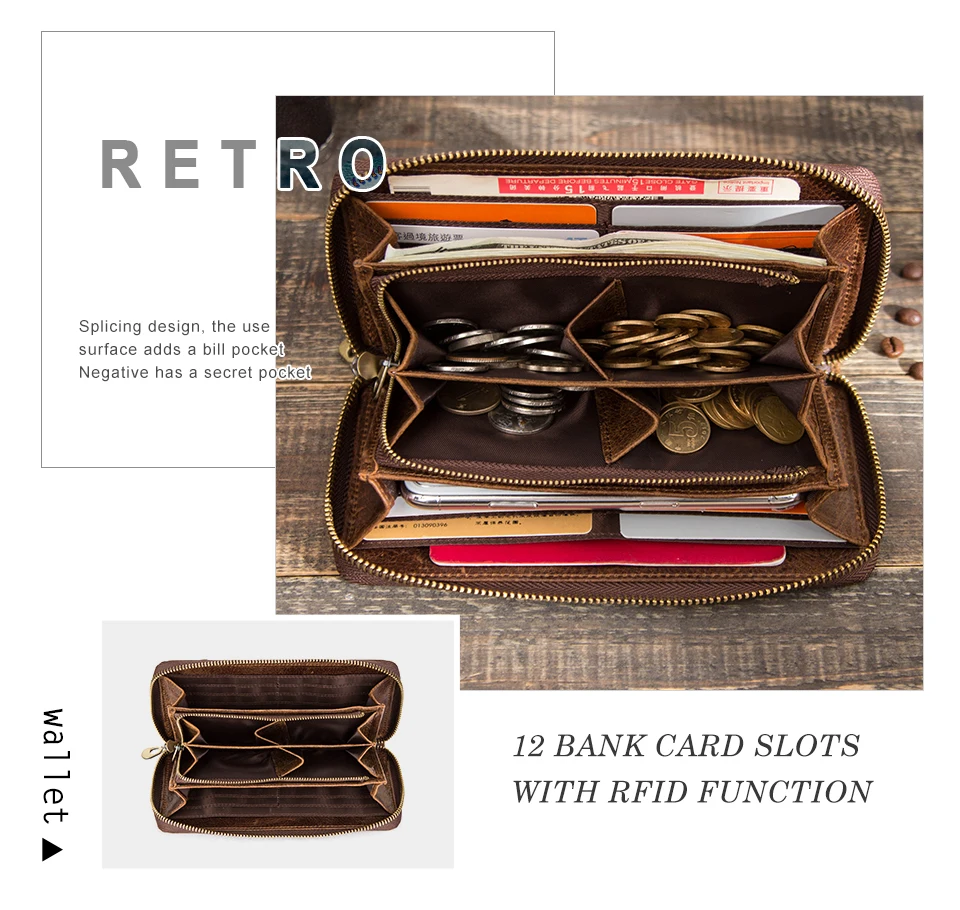 Top Quality New RFID Retro Genuine Leather Men Wallet with Coin Pocket Big Capacity Multi Card Holder Cow Leather Wallet for Men