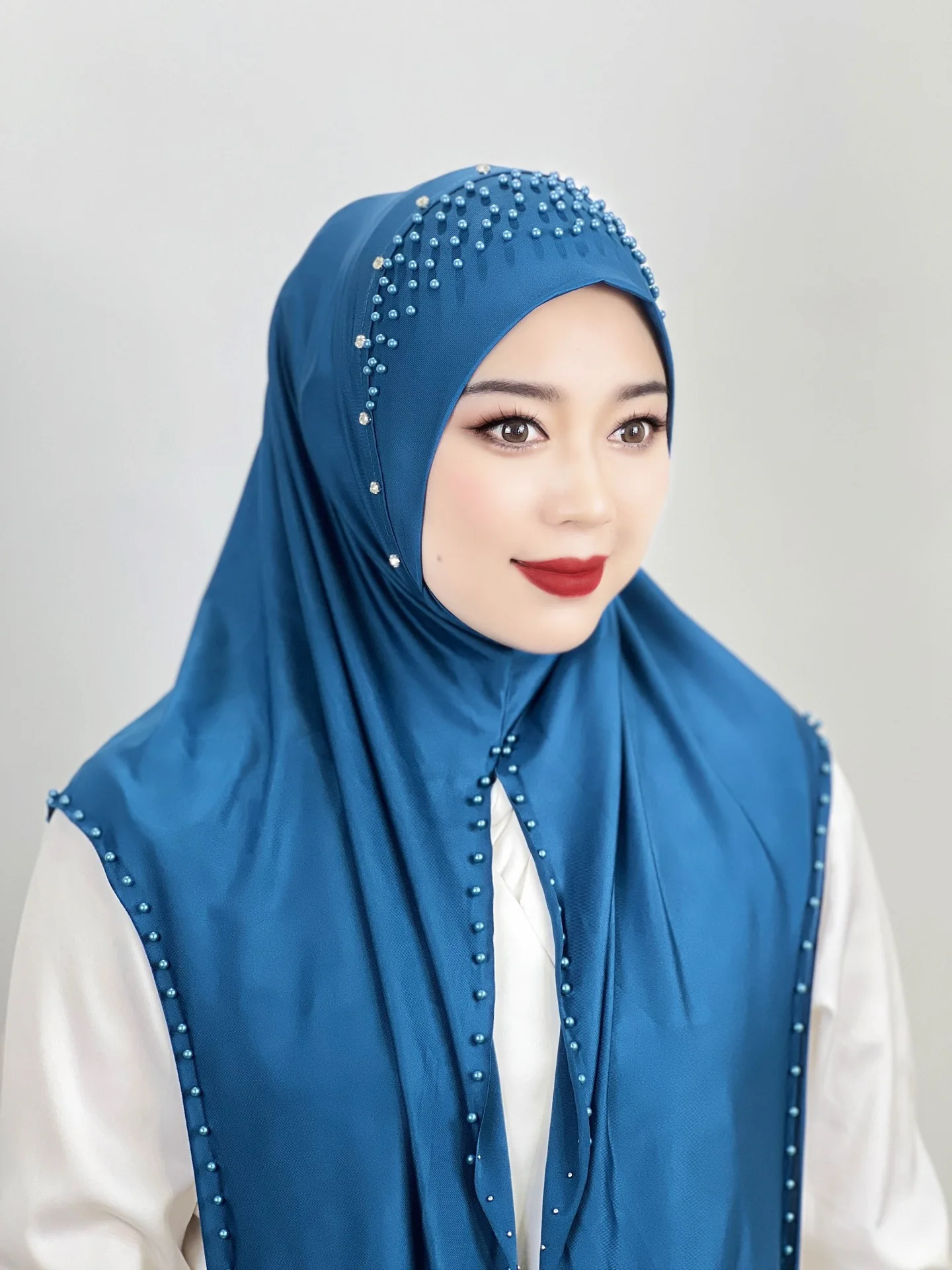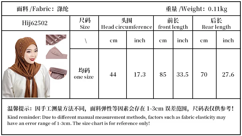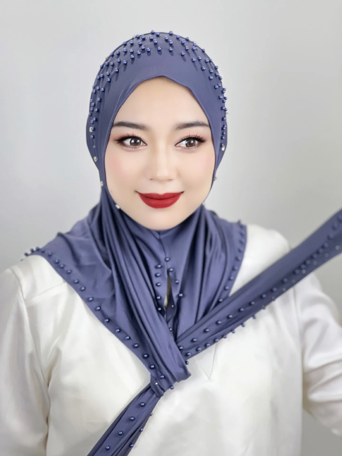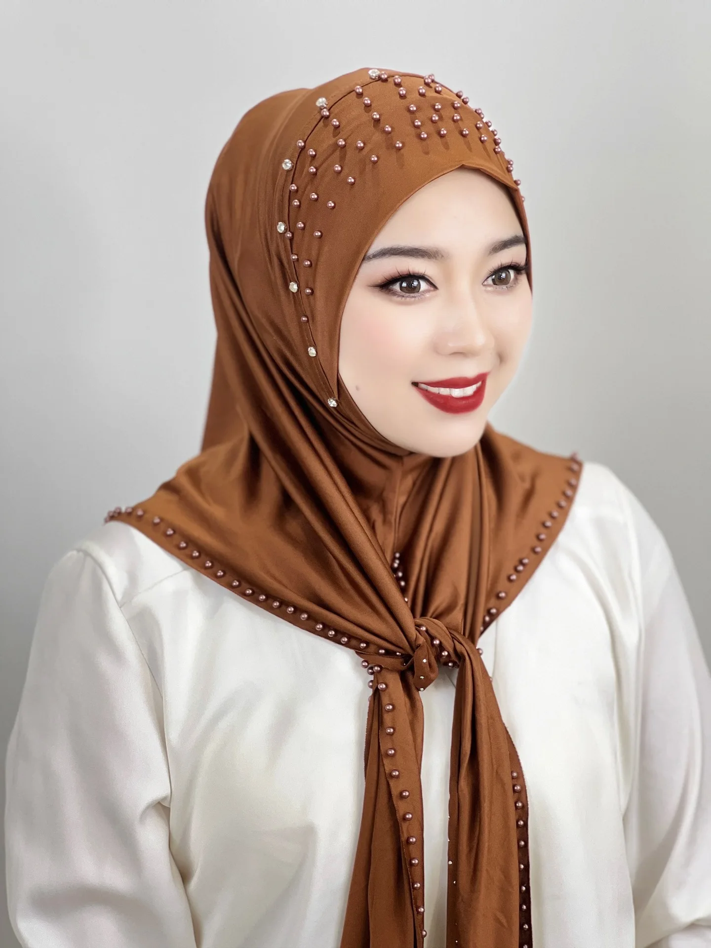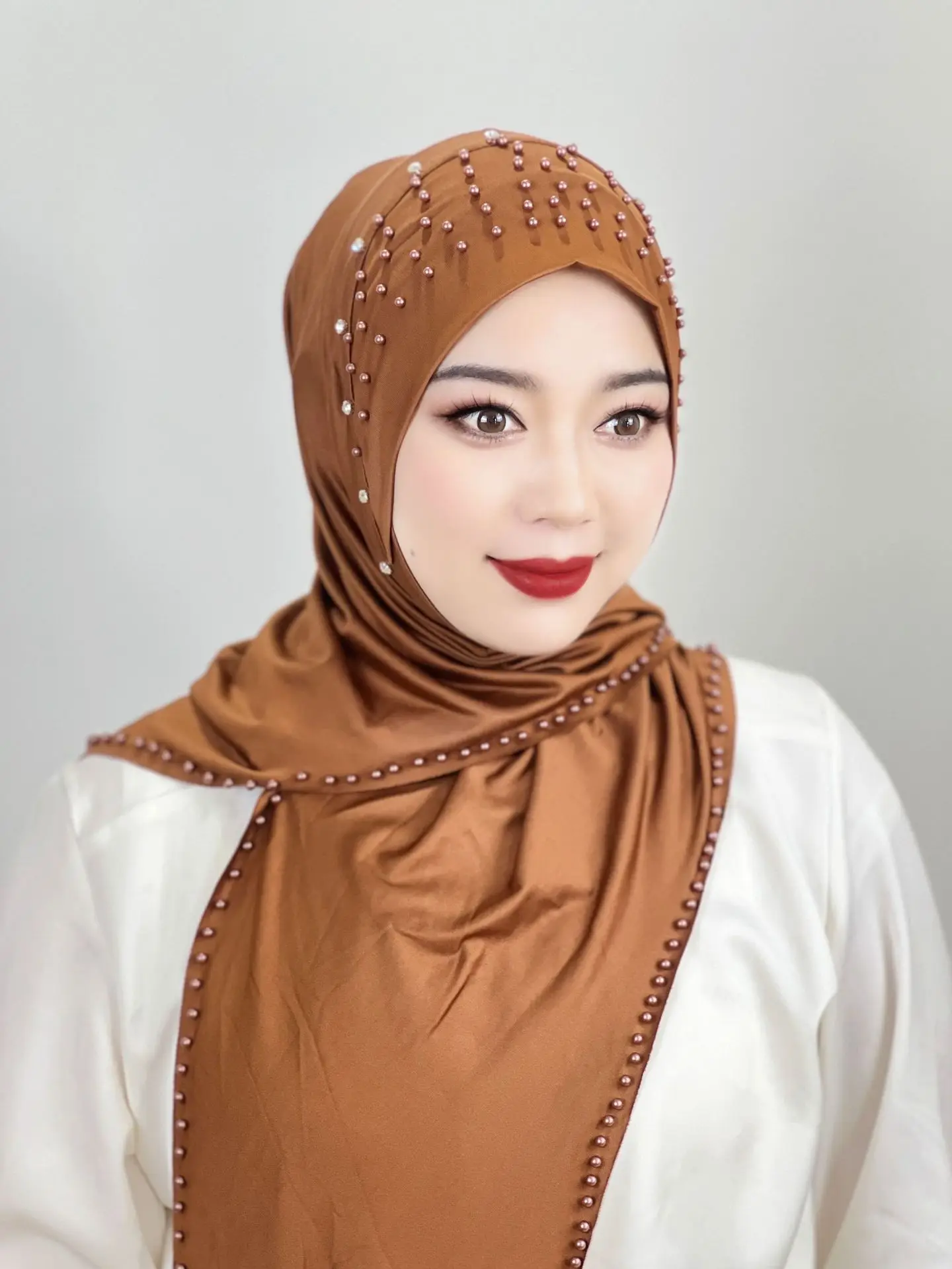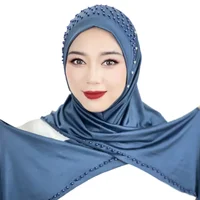 Convenient Instant Hijab Pullover Beaded Scarf Malay Shawl Women’s Solid Color Headscarf (one cap gift)