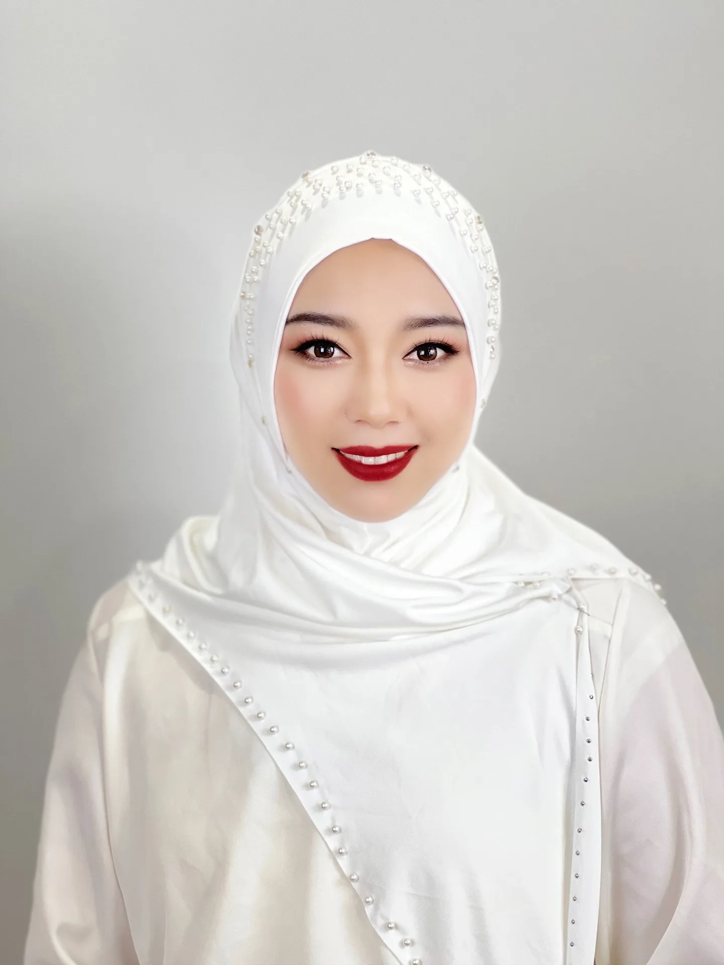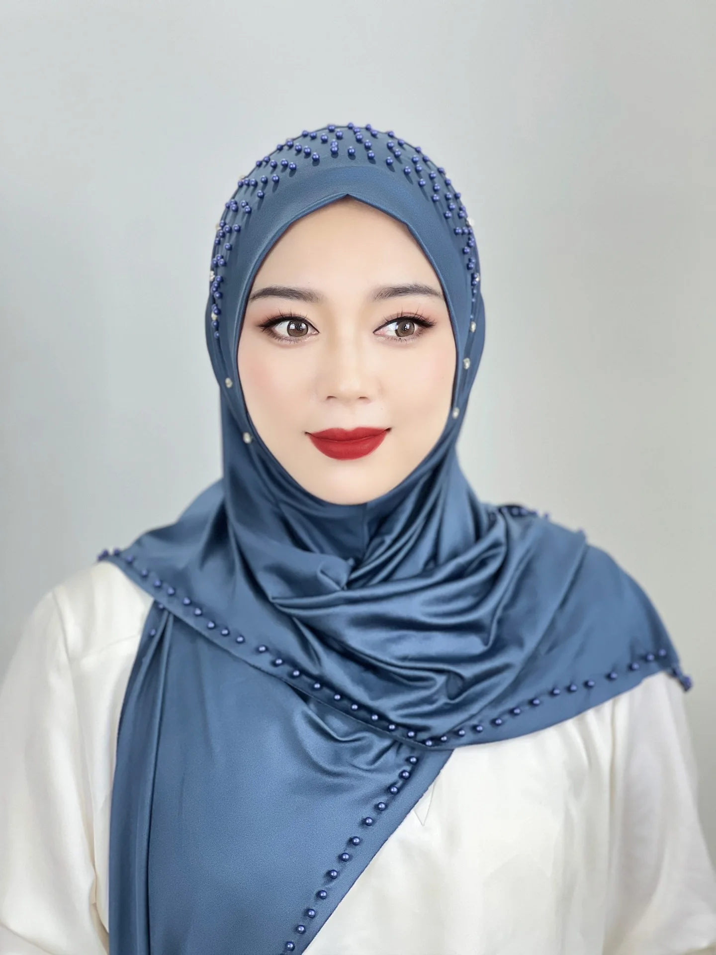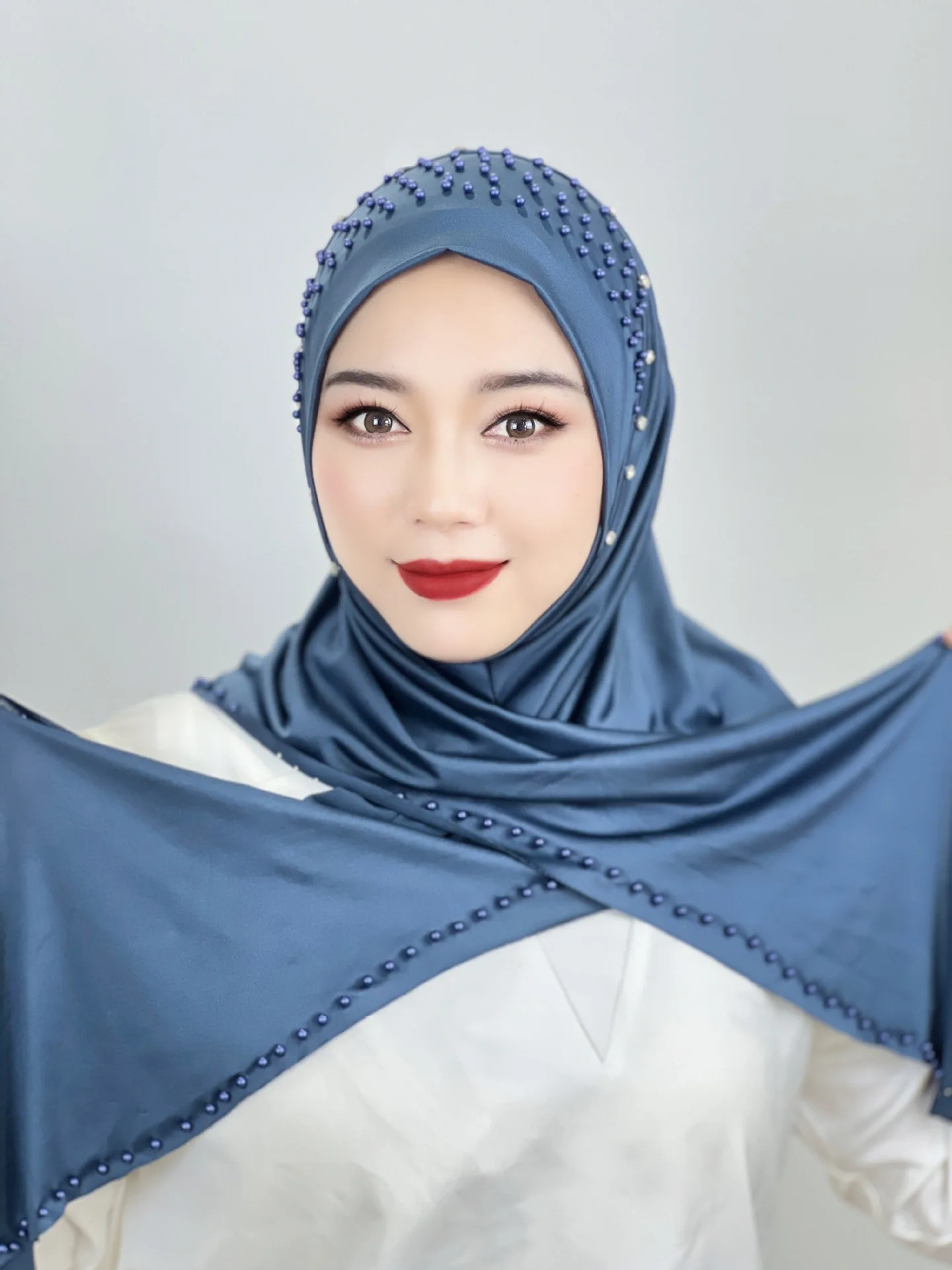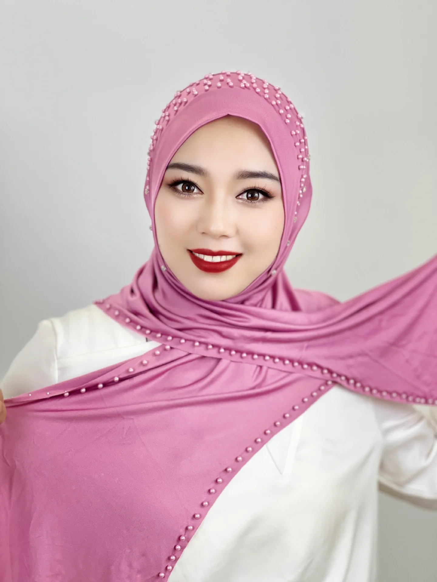 Convenient Instant Hijab Pullover Beaded Scarf Malay Shawl Women’s Solid Color Headscarf (one cap gift)
