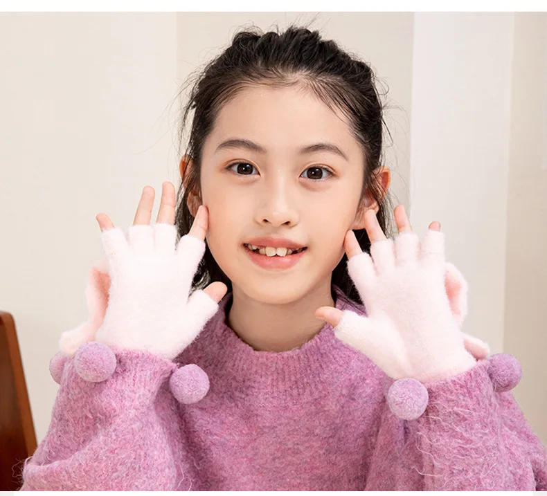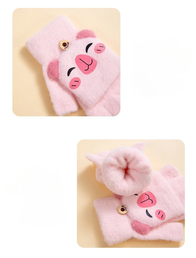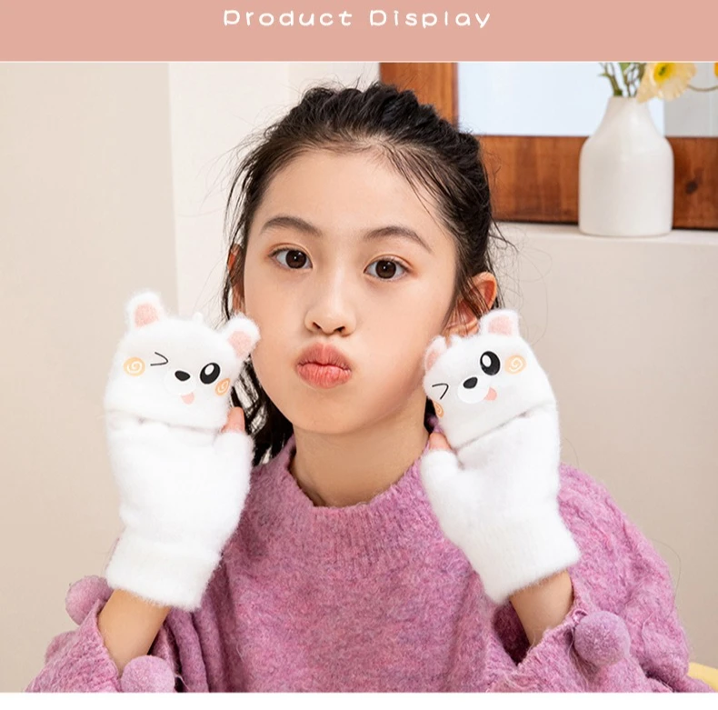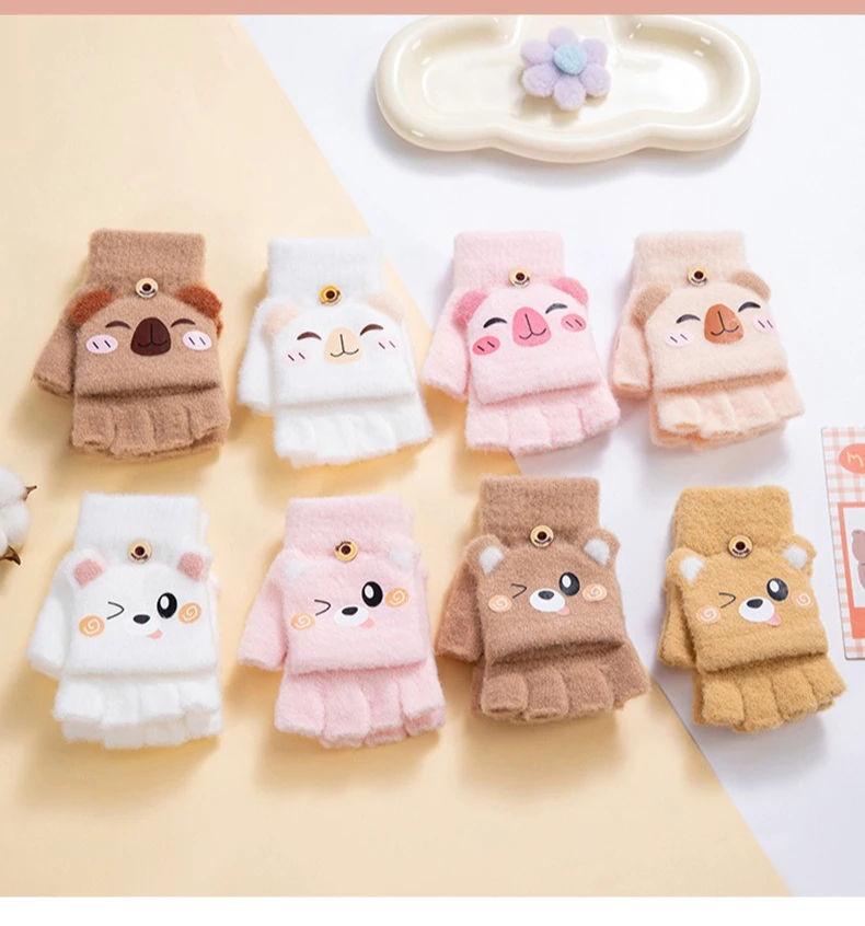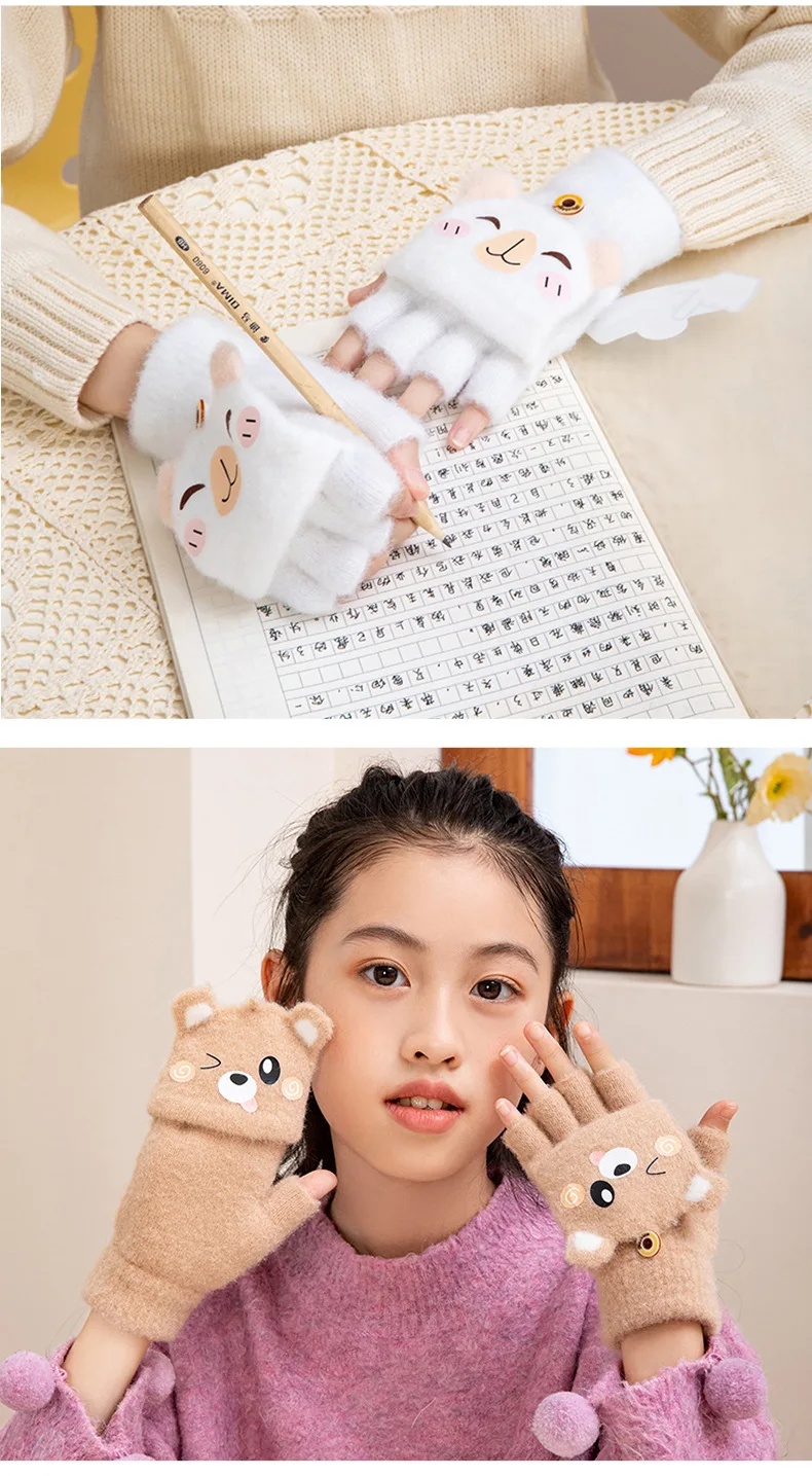 Convertible Flip Top Mittens for Kids Cute Cartoon Warm Winter Gloves Fingerless Full Finger Cover Animal