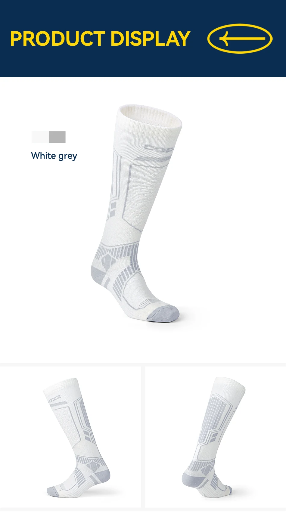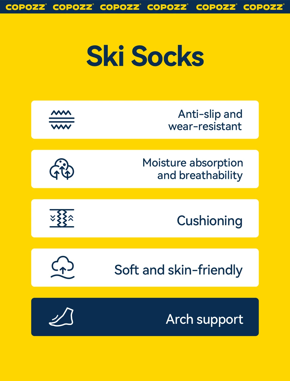 Ski socks adopt environment-friendly and professional dyeing technology, which is not easy to fade and will not dye the heel