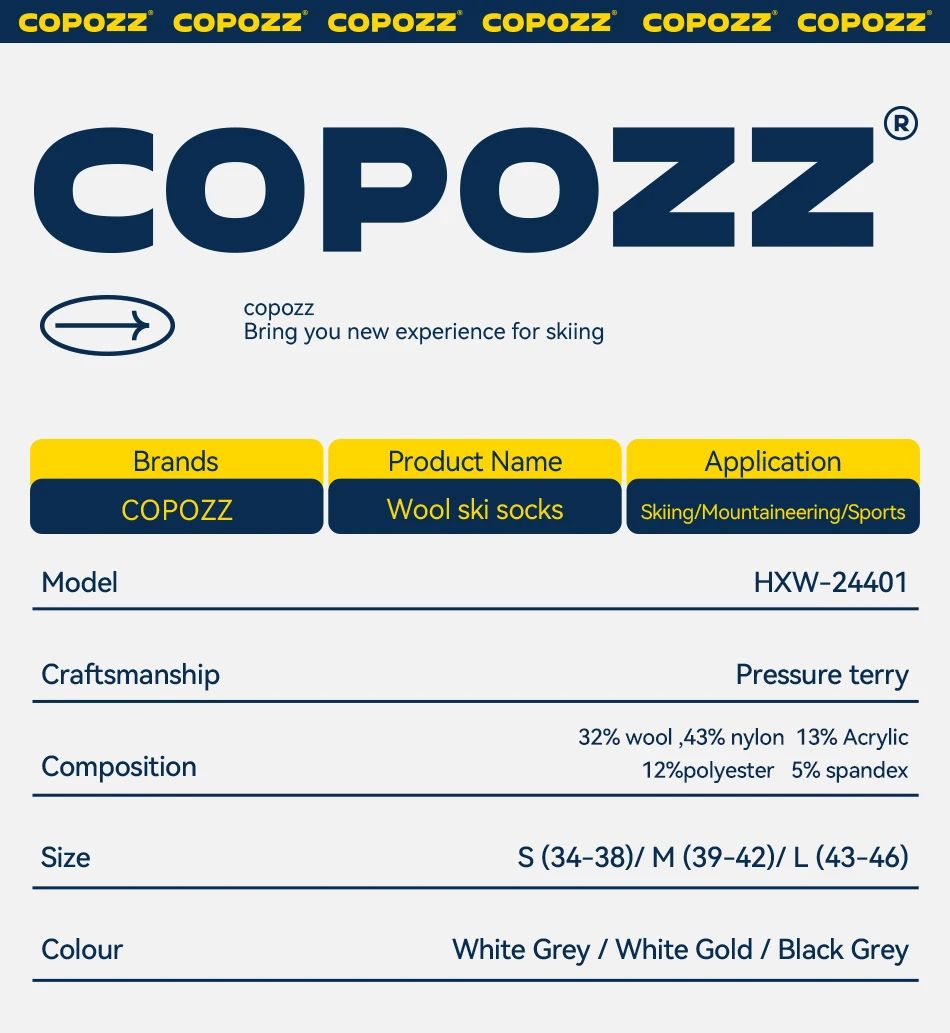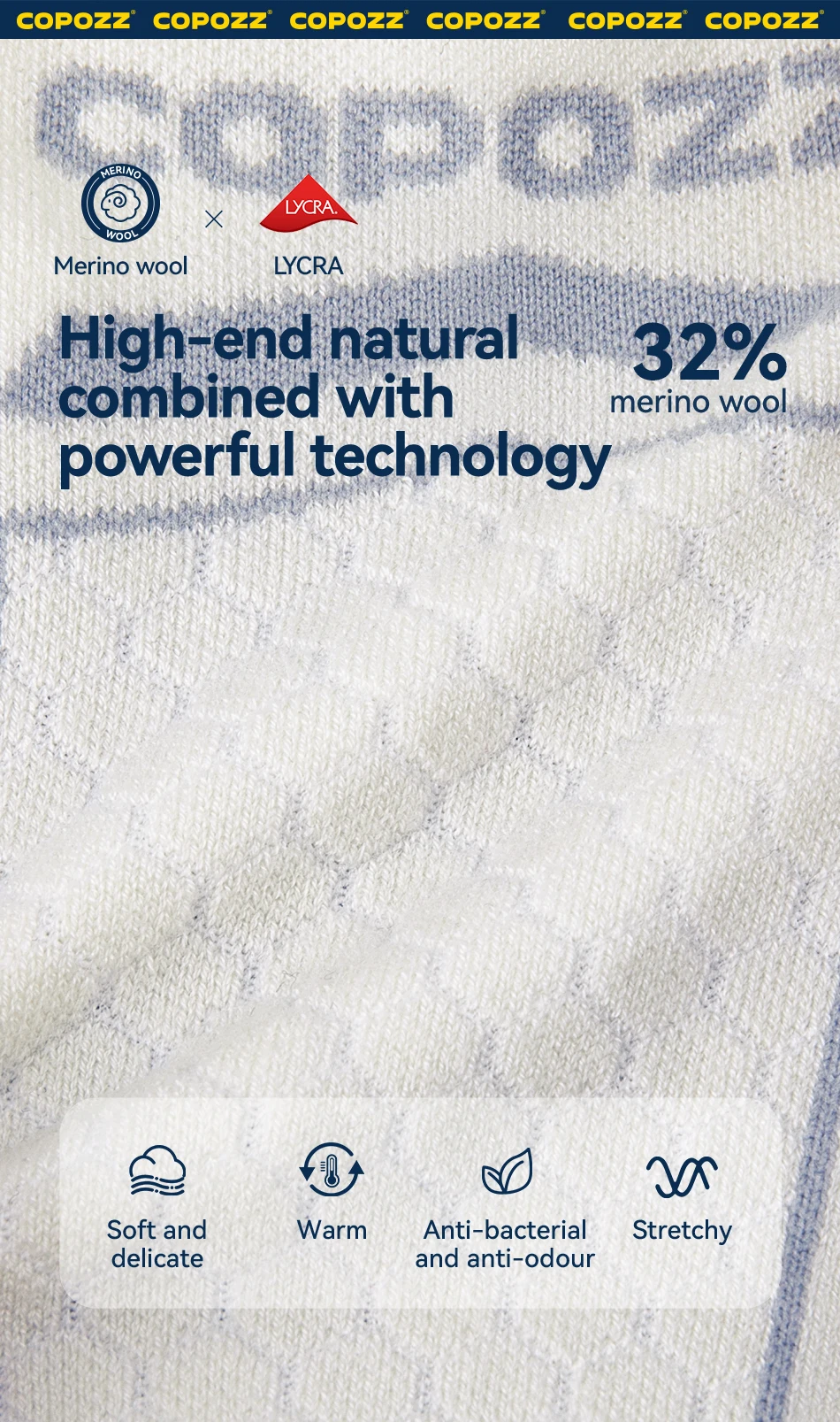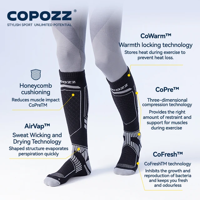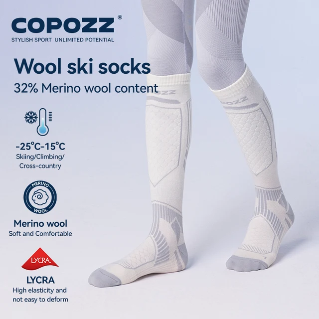 COPOZZ Merino Wool Ski Socks Men Women Outdoor Hiking Socks Thicken Warm Perspiration Quick-dry Knee