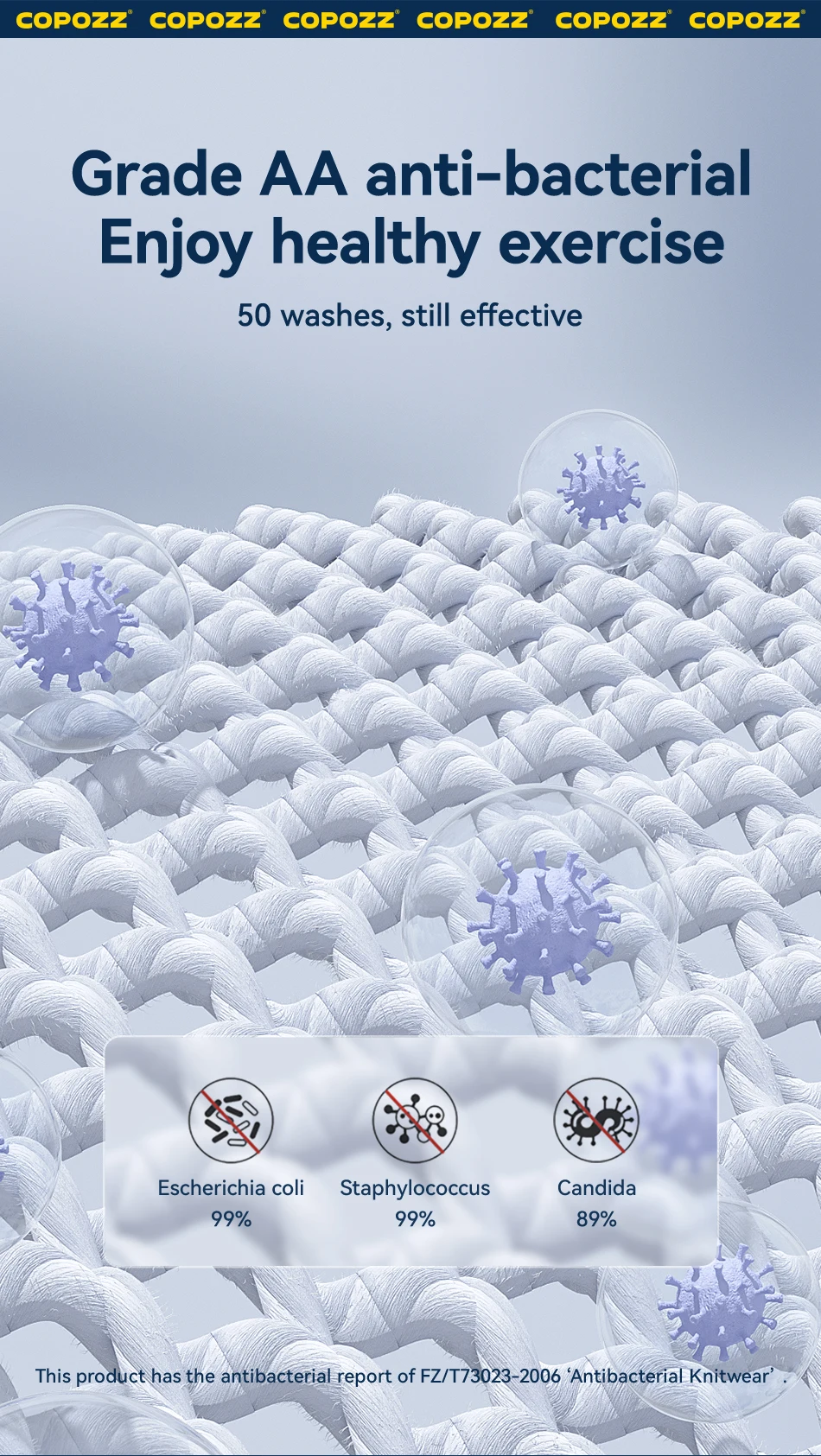 After testing, the ski socks meet the AA level bacteriostatic standard, and the bacteriostatic effect is still effective after 50 times of washing