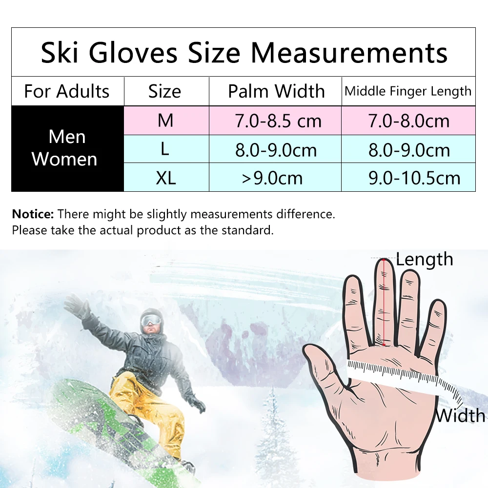 How to Choose: COPOZZ Ski gloves are generally snug fit. You’d better choose the larger size if you are in between sizes.