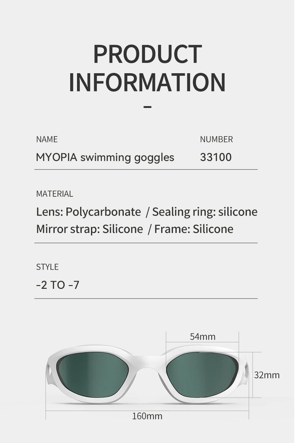 COPOZZ Summer Men Women Swimming Goggles Myopia Adult Anti Fog Diopter Clear Lens -2 to -7 Prescription