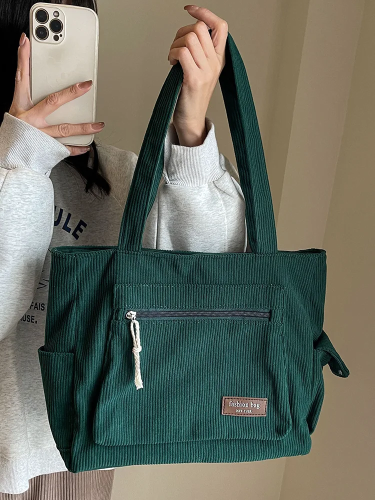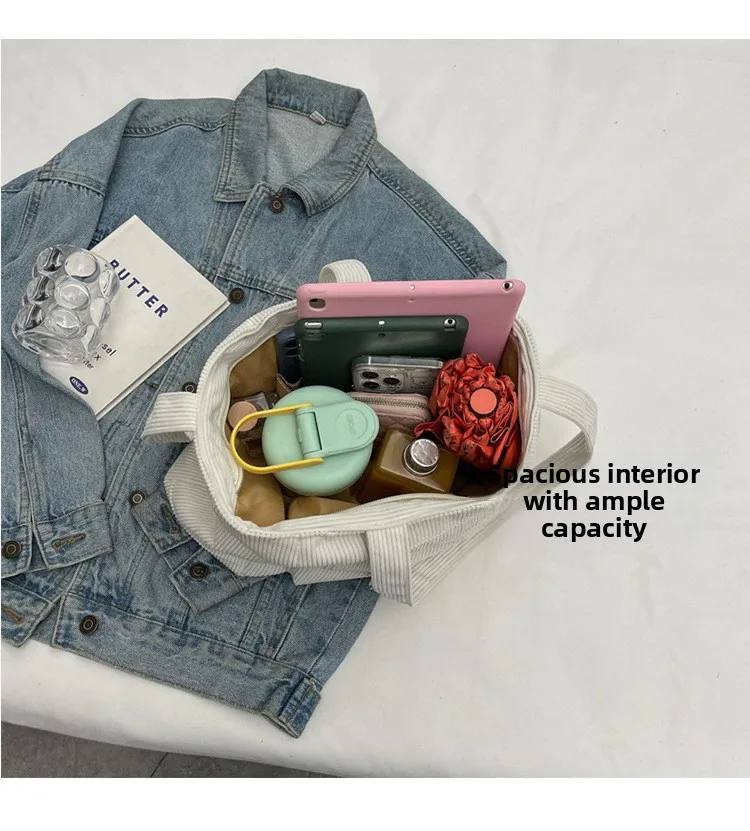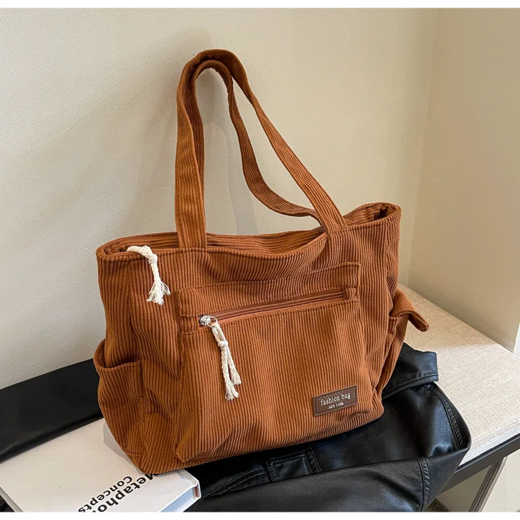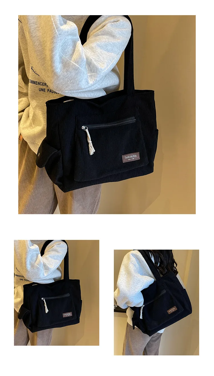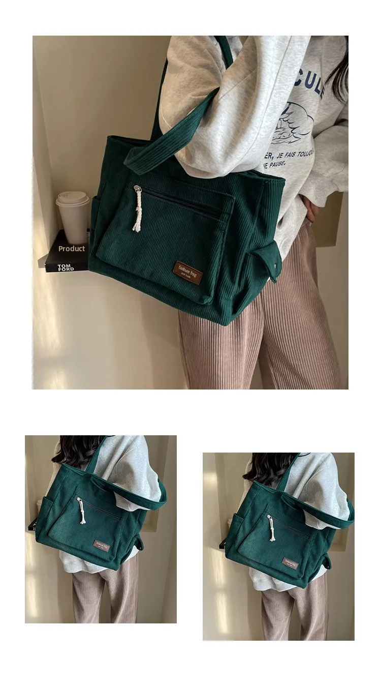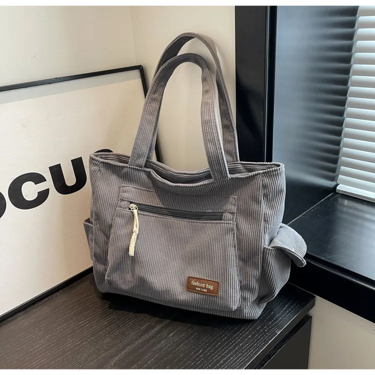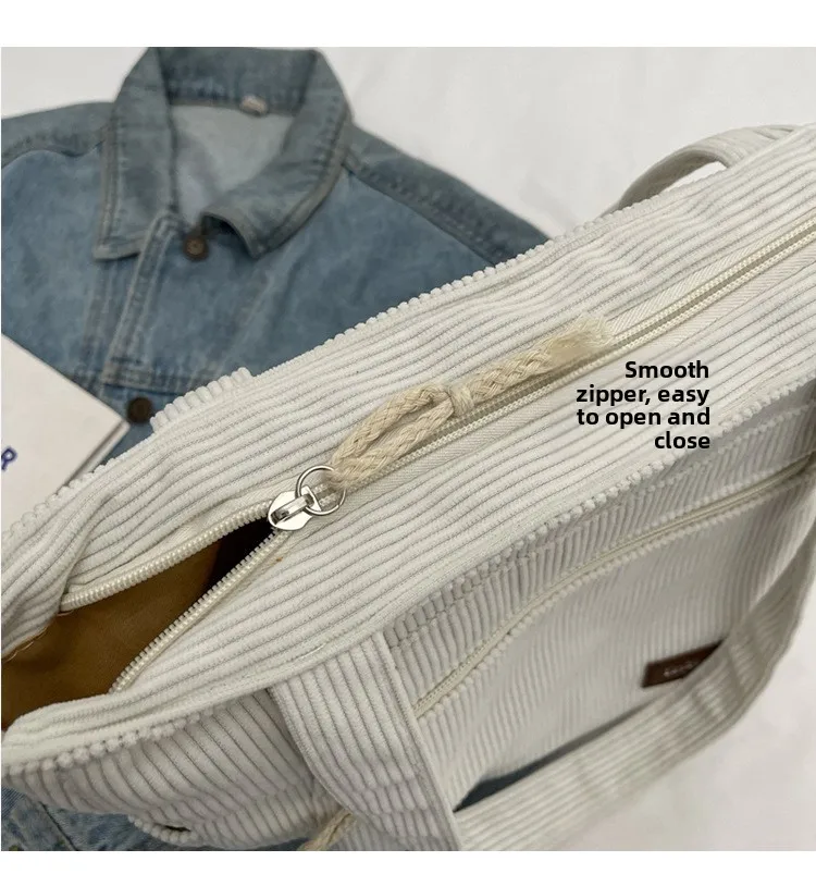 Crafted from high-quality corduroy, this tote bag offers durability and a touch of elegance.