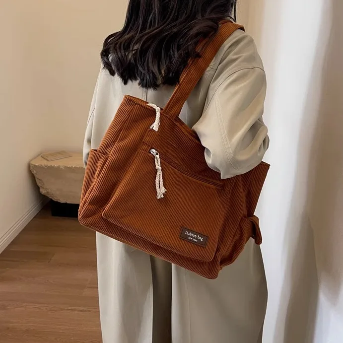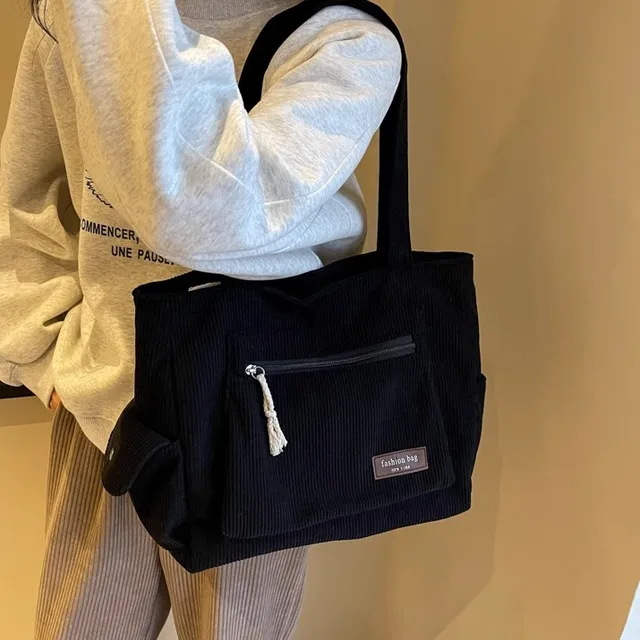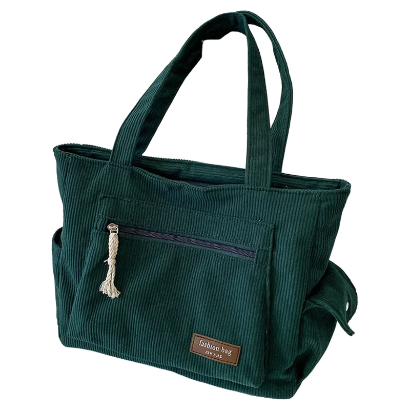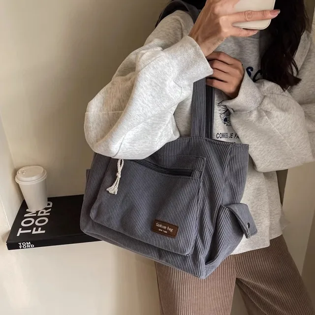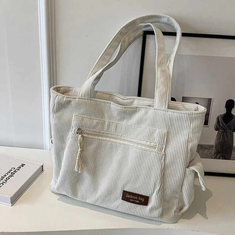 Crafted from high-quality corduroy, this tote bag offers durability and a touch of elegance.