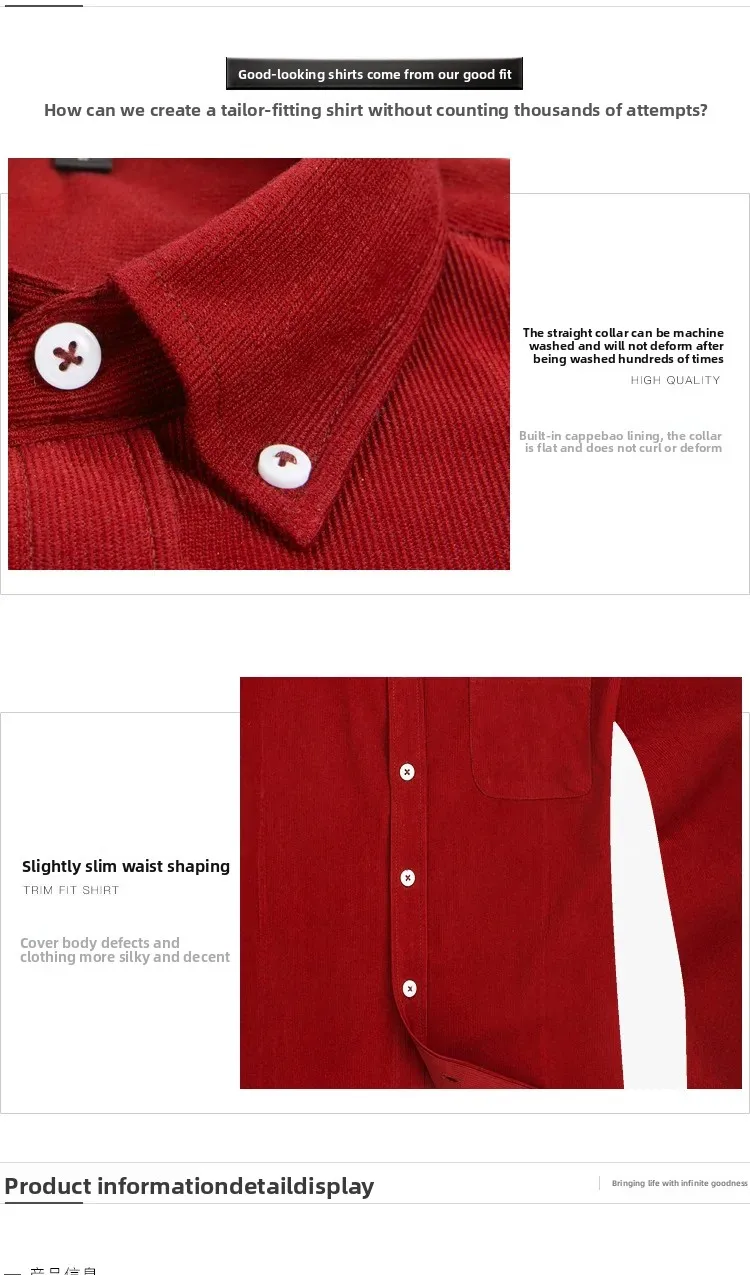 • Versatile Seasonal Wear : This corduroy shirt is perfect for spring and autumn, offering a stylish blend of warmth and comfort for the transitional seasons.