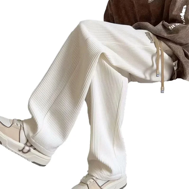 Corduroy Men’s Casual Pants Spring Autumn New American Loose Wide Leg Sport Trousers Texture Straight