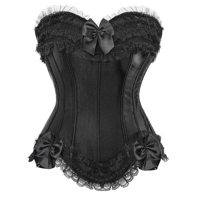 Corset Bustier Top for Women Burlesque Costume Plus Size Princess Corset Top Lace up Satin Corset Black