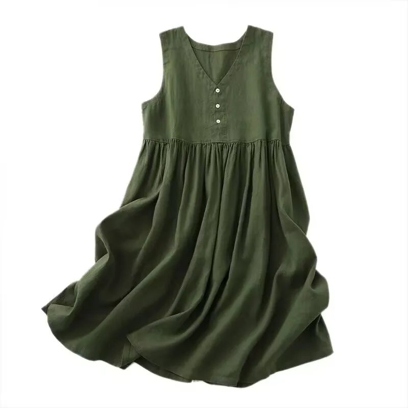 Embrace the artistic charm of this cotton-linen dress, perfect for those who appreciate a touch of elegance in their wardrobe.
