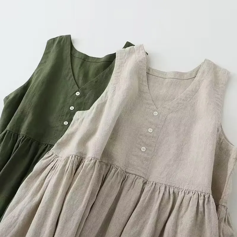 Designed for the summer season, this sleeveless dress offers a cool and comfortable wear, ideal for hot days.