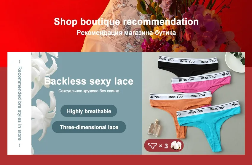 Item: 3Pcs/Lot Women’s Cotton G-String Thong Panties String Underwear Women Briefs Sexy Lingerie Pants Intimate Ladies Letter Low-Rise