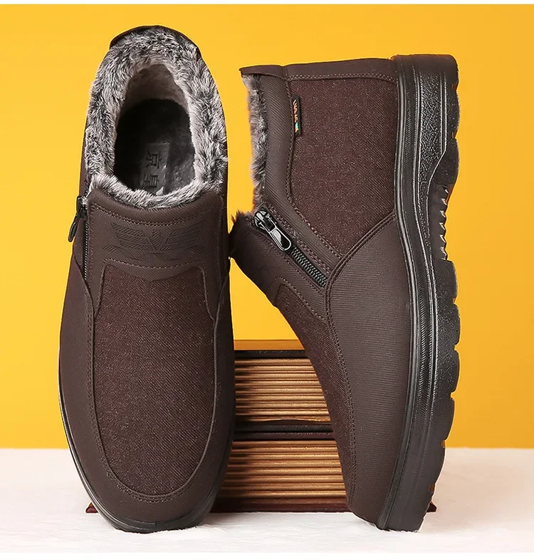 Cotton Shoes Middle-aged Elderly Men’s New Plush Warm Anti Slip Waterproof Snow Boots Outdoor Work