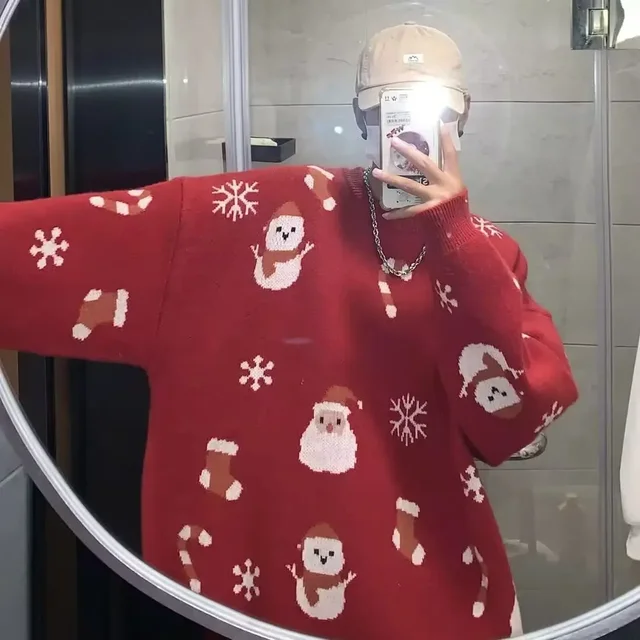 Be the first to review “Couples Christmas Santa Claus Style Comfortable Loose Fit Crew Neck Pullover Sweater Fashionable All-Match”