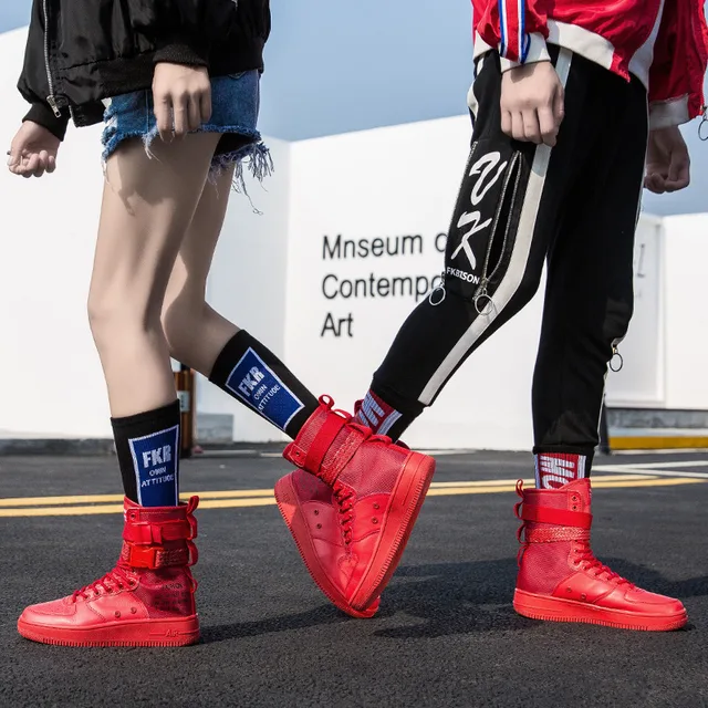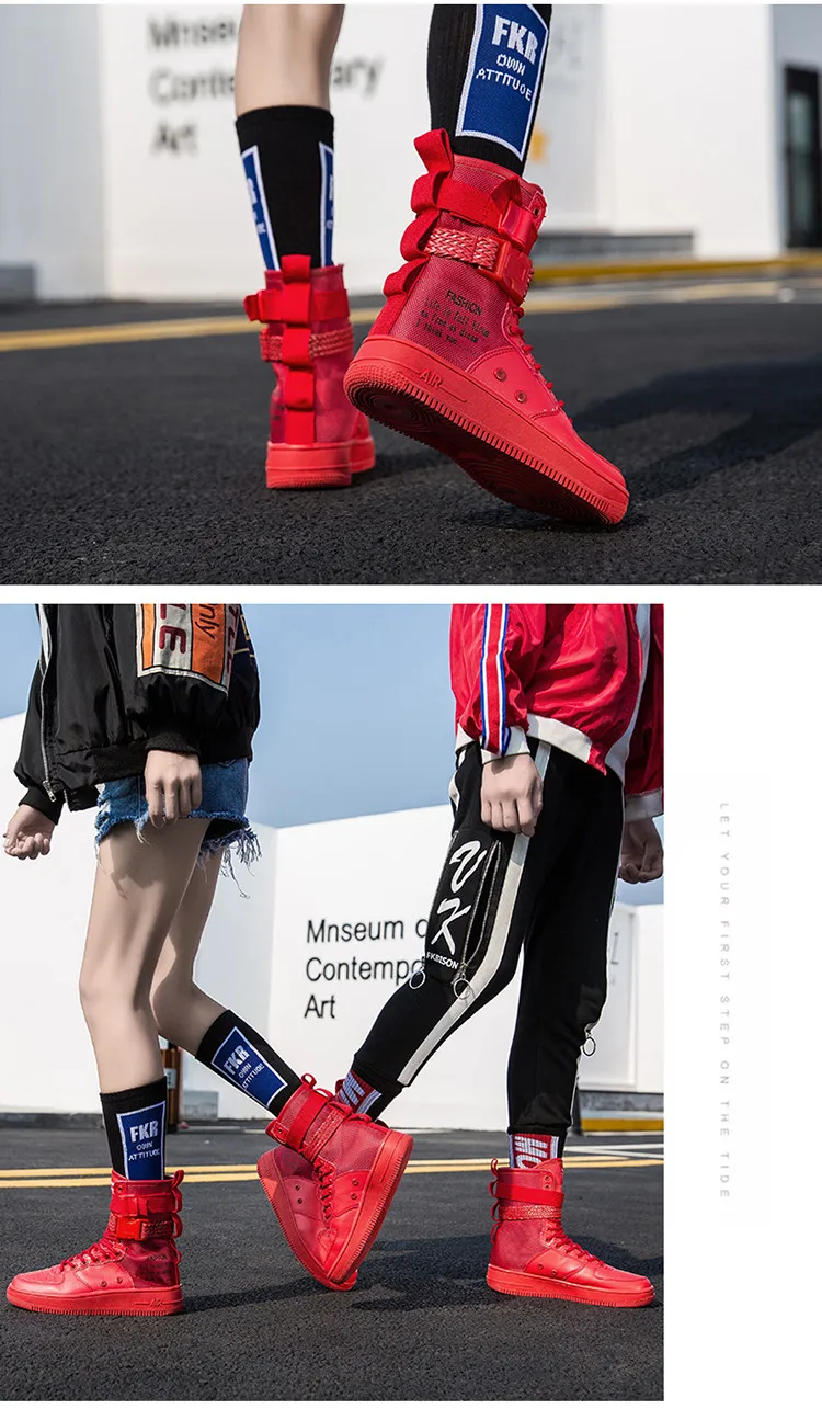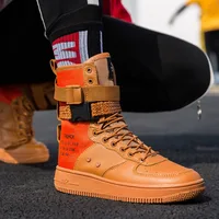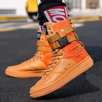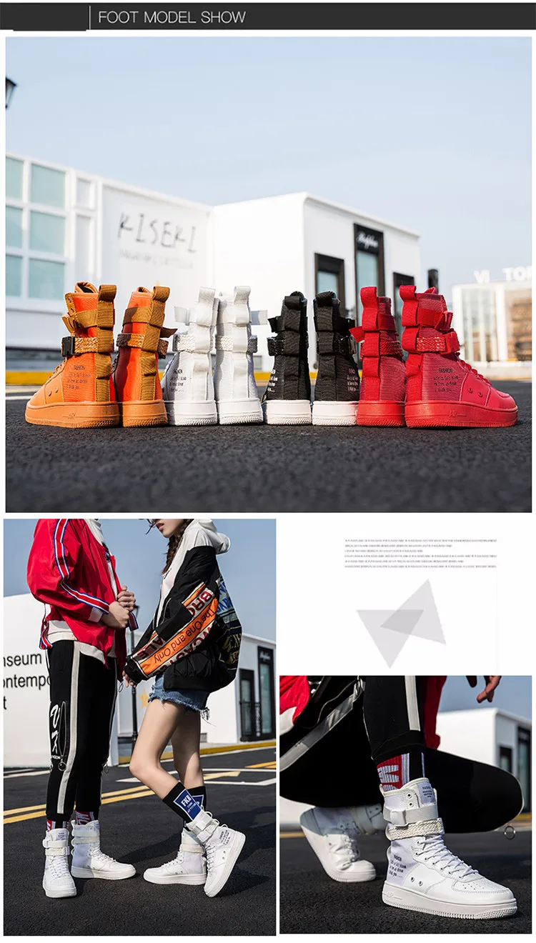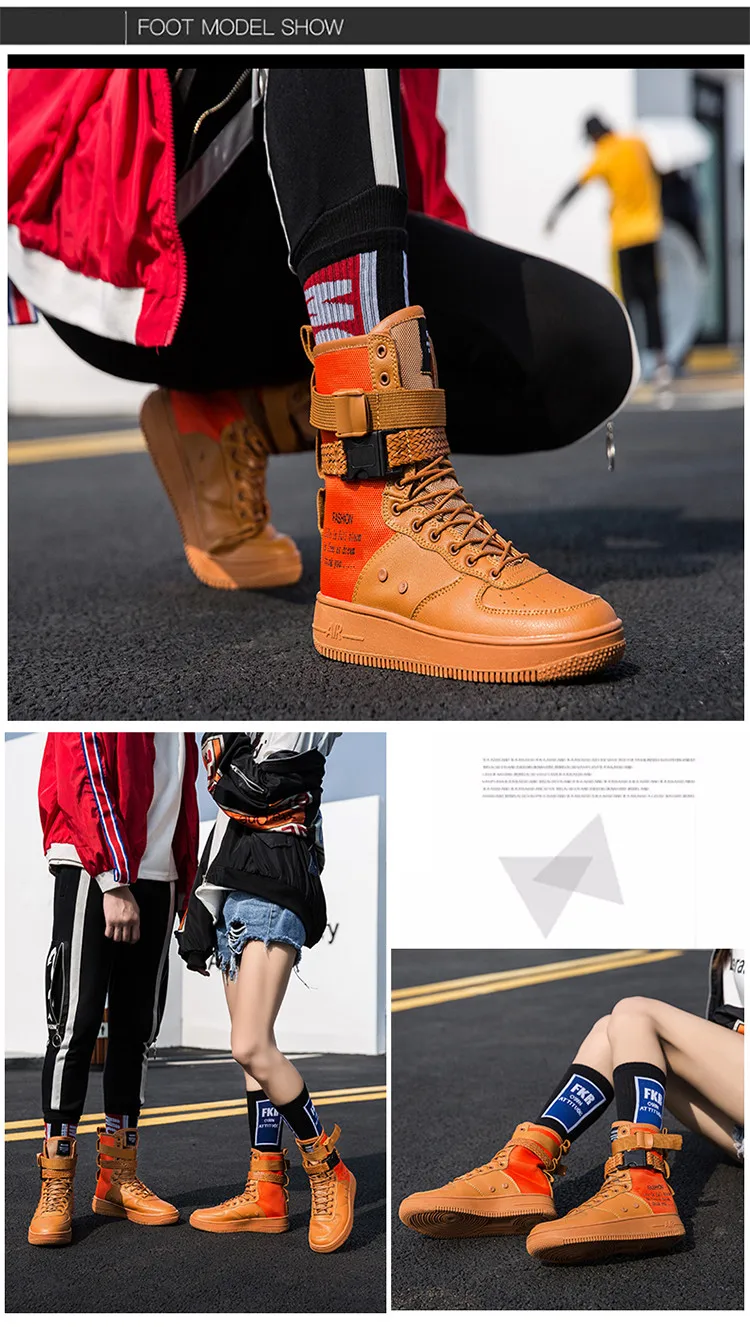 Couples High Top Skateboarding Shoes Man Buckle Orange Women’s Fashion Sneakers New Platform Men’s