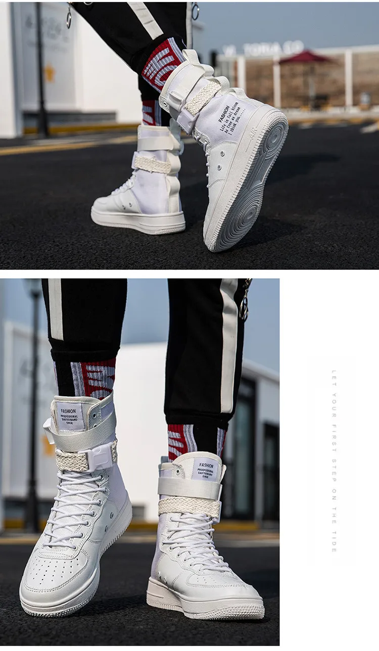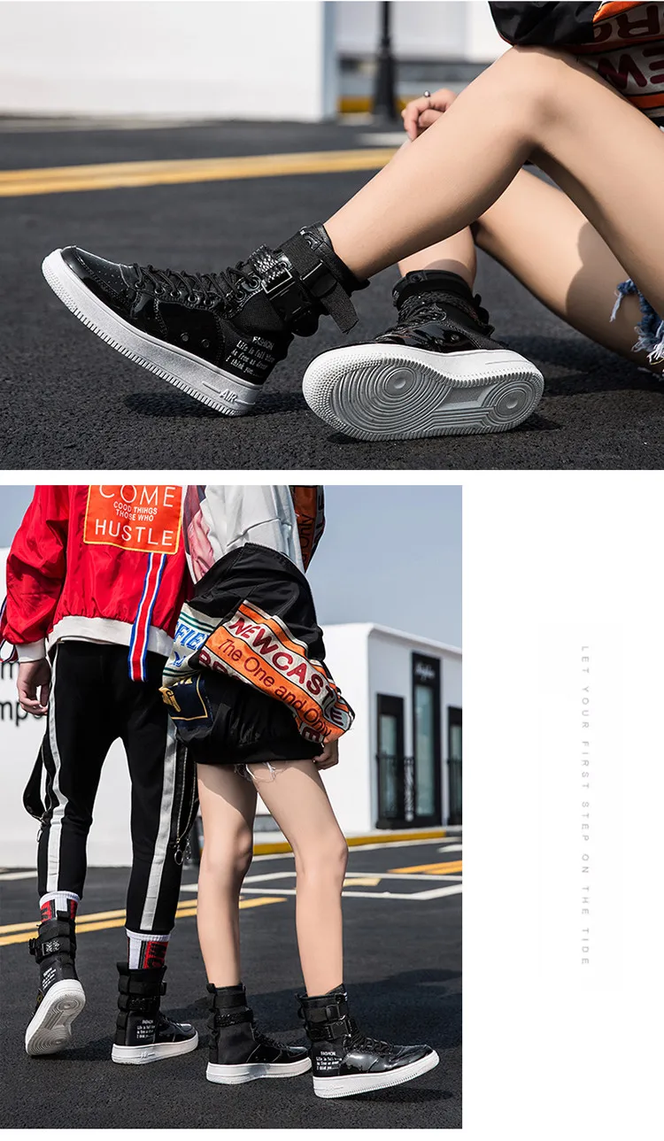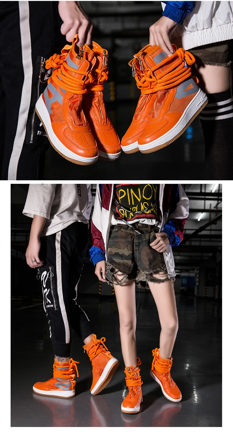Couples High Top Skateboarding Shoes Man Buckle Orange Women's Fashion Sneakers New Platform Men's Skate Shoes Large Size 36-46