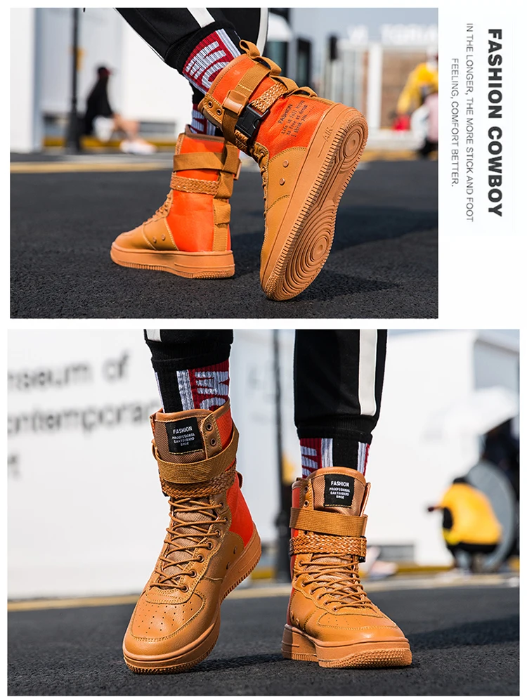 Be the first to review “Couples High Top Skateboarding Shoes Man Buckle Orange Women’s Fashion Sneakers New Platform Men’s”