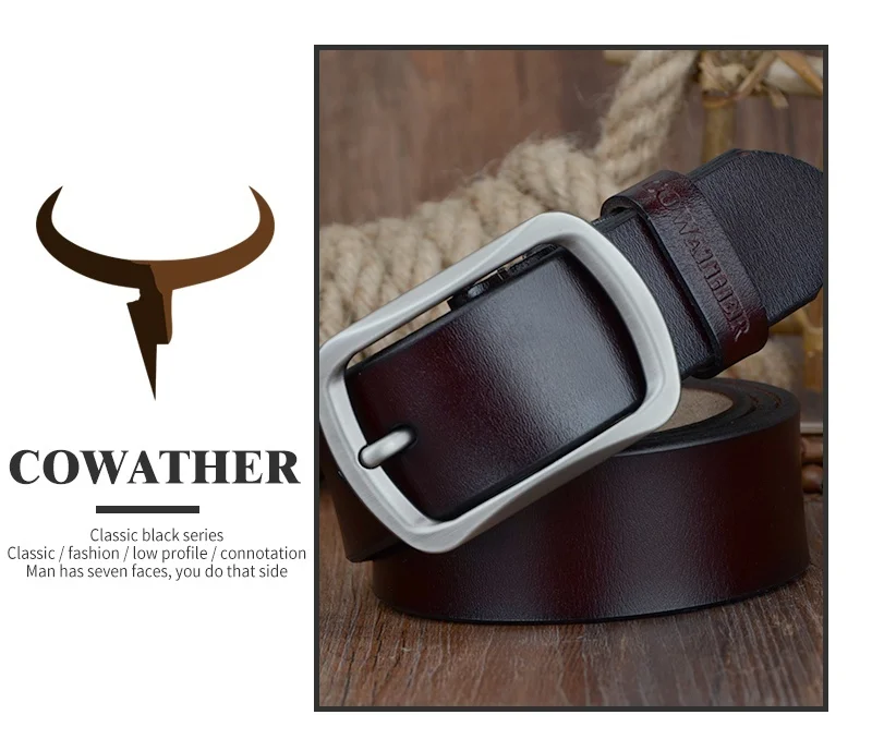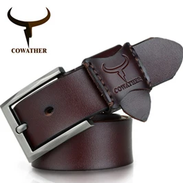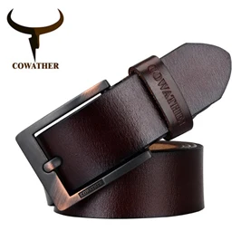 COWATHER cowhide genuine leather belts for men brand Strap male pin buckle vintage jeans belt 100-150