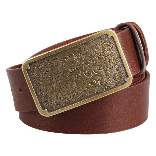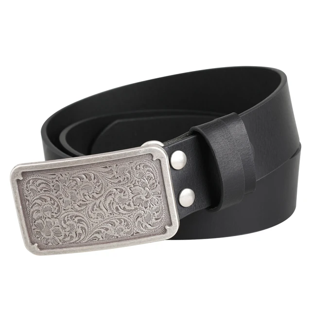 The silver belt buckle is silver plated, and the belt is made of single-layer cow leather