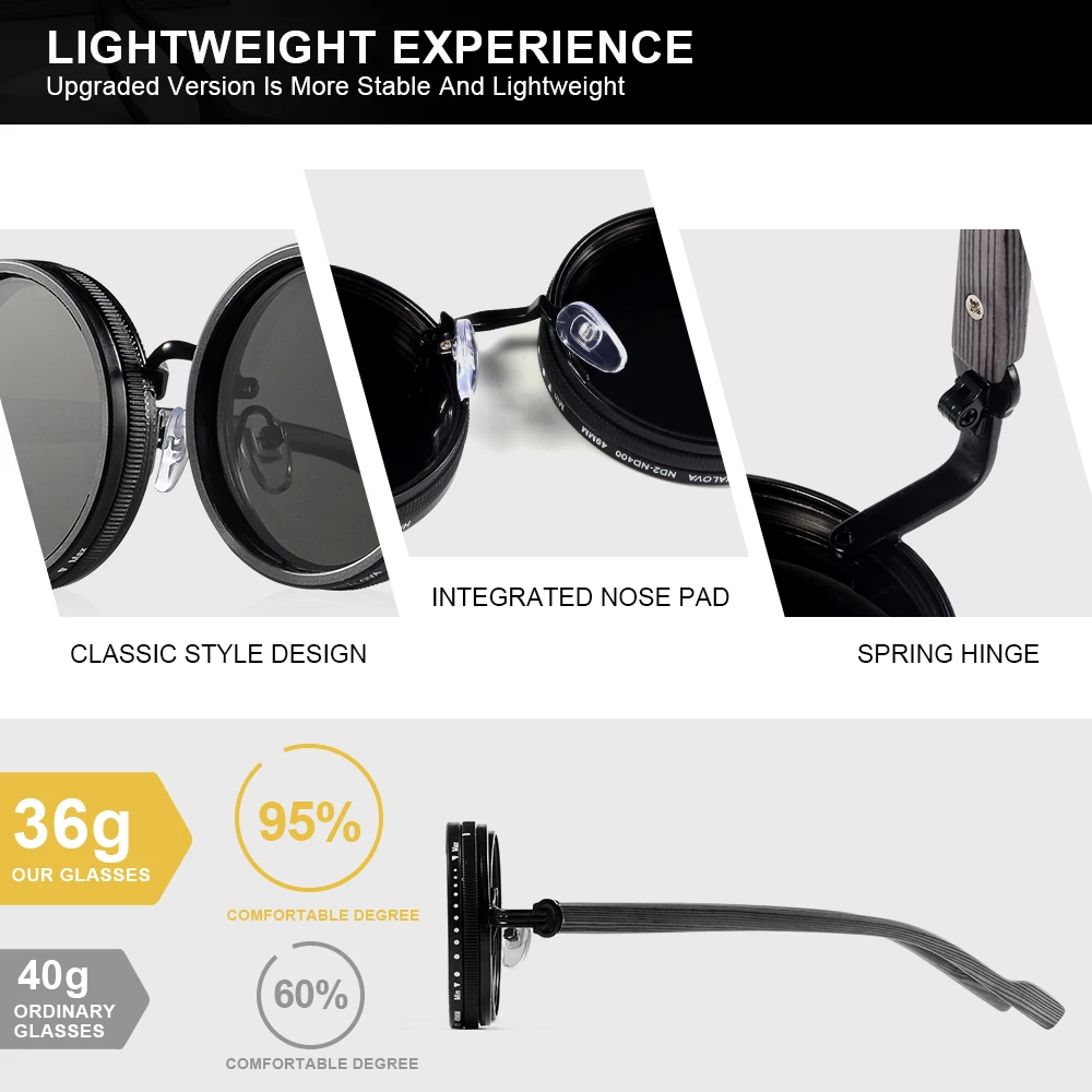 CRIXALIS Polarized Small Frame Round ND9 Adjustable Dimming Sunglasses Men Light-Reducing Sun Glasses