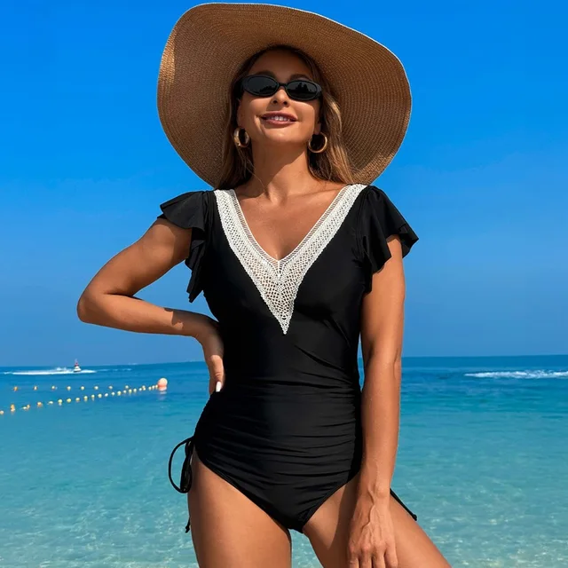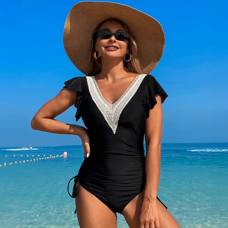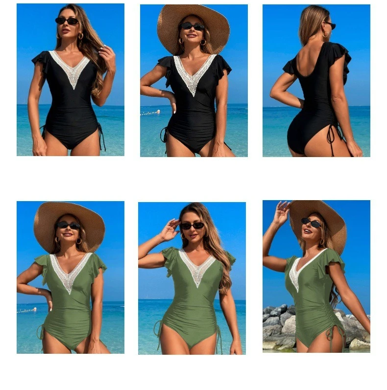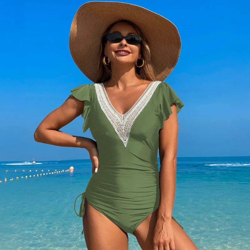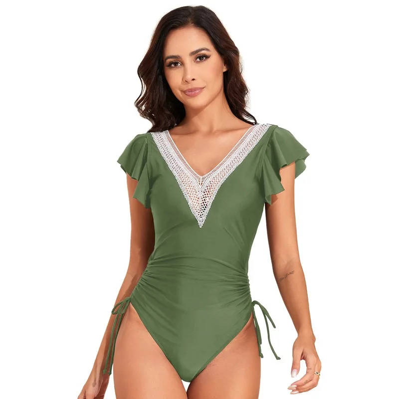Be the first to review “Crochet Drawstring One Piece Swimsuit Women Sexy Ruffle Swimwear Female Solid Bathers Bathing Swimming”