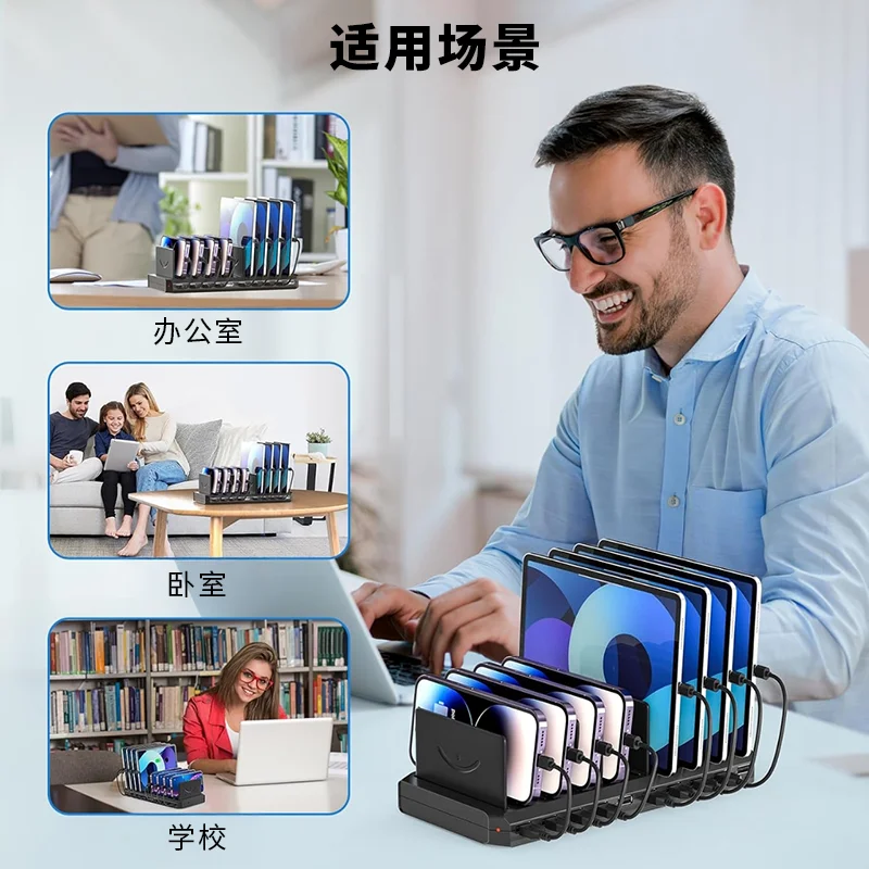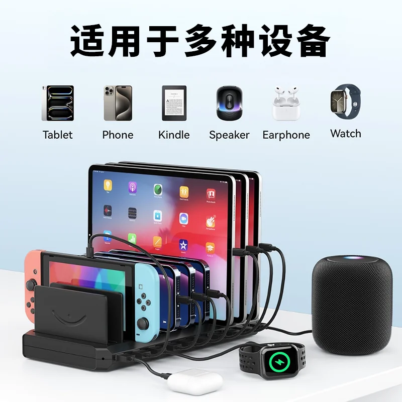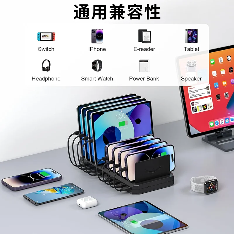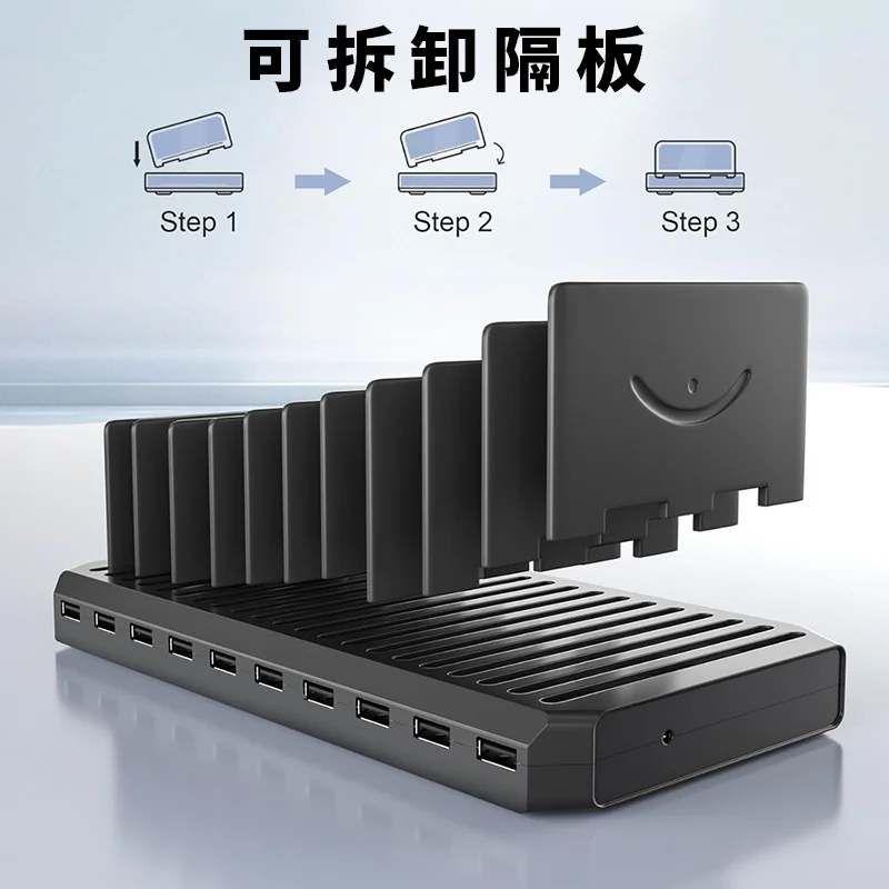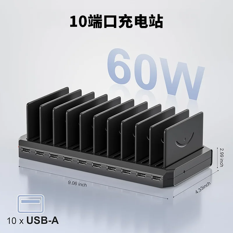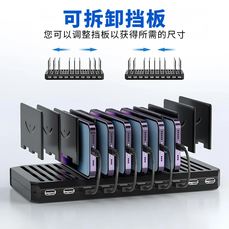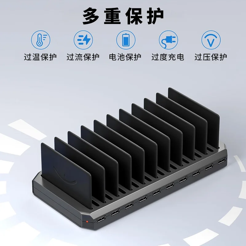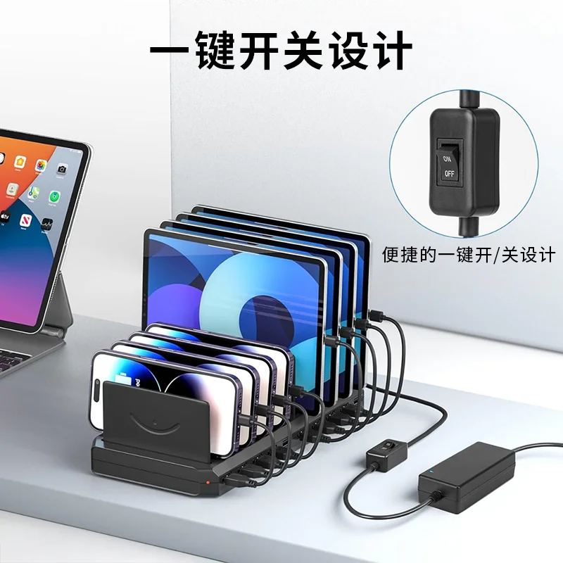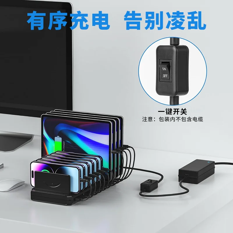 Cross border 60W/100W multi port USB desktop storage fast charger 10 port with bracket intelligent C-port