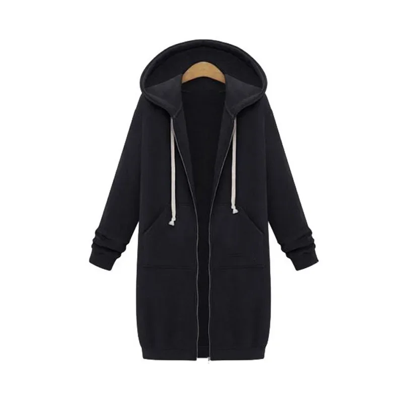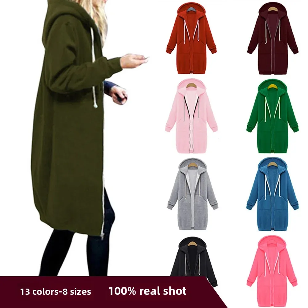Cross-Border Autumn Winter Women’s Long Sleeve Hoodie Jacket Medium Length Coat Female Outerwear