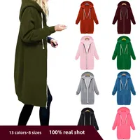 Cross-Border Autumn Winter Women's Long Sleeve Hoodie Jacket Medium Length Coat Female Outerwear Casual Comfortable Sweatshirt