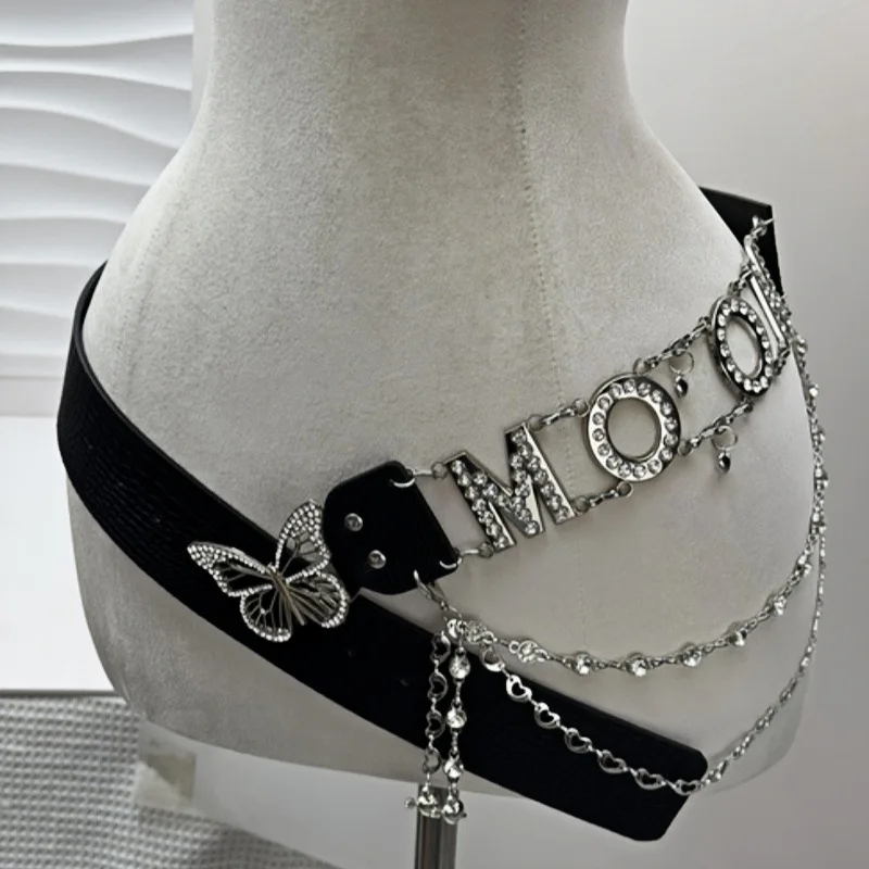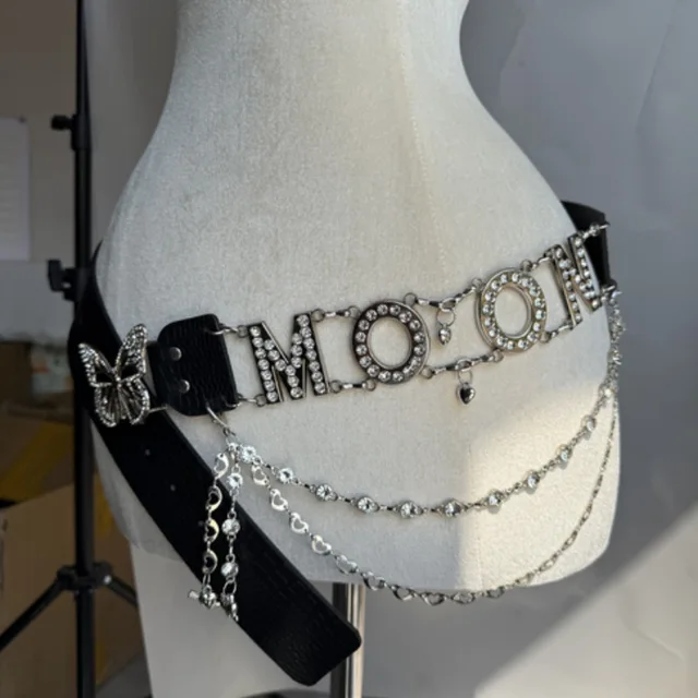 Cross-border hottest Y2K Yabi Shibuya hot girl letters DIA waist chain rhinestone belt personality high-end
